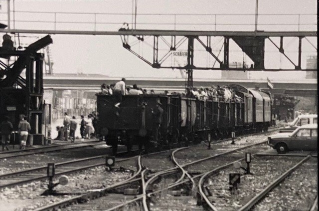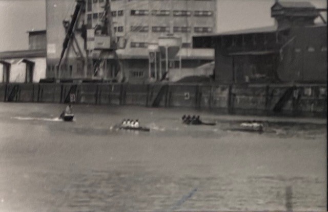 Spectators and coaches could watch the races from an old clanking railway along one side of the dock… I remember Janousek sitting in a freight car ‘like it was going to Auschwitz, peering out of little holes with his stopwatch and praying that his boat would stop at the finish and not pile into the end wall of the dock’.