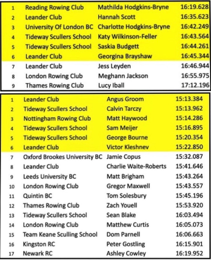 The final results put the Tideway Scullers Open 2x Championship double of Bourne and O’Mahony as the fastest men, with a time of 14m 17s, and had Craig and Grant of University of London as the fastest women, their double recording 14m 50s.