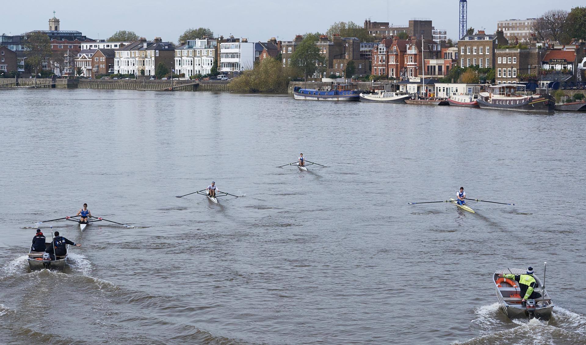 The first of the Tideway head races organised under the ‘new normal’, the Pairs Head, went off successfully on 11 October with open, women, junior and masters categories for pairs and doubles. The race is run by Barnes Bridge Ladies Rowing Club, the only women’s rowing club on the Tideway. The special 2020 ‘twists’ included the fact that entries were limited to Tideway Clubs upstream of the closed Hammersmith Bridge, the total number of boats participating was capped at 99, the course was from the University of London boathouse at Kew/Chiswick to Sons of the Thames RC at Hammersmith and all participants had to complete an online self-assessment health declaration 24 hours before taking part in the race.