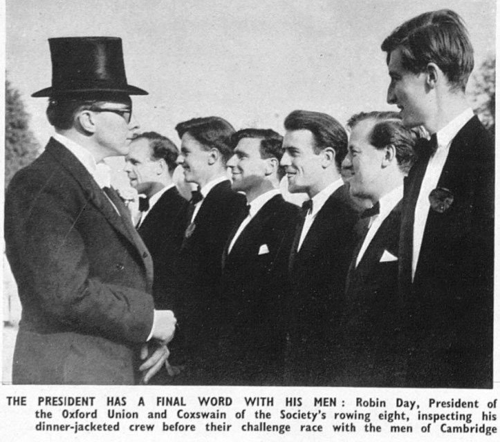 The coxswains were the respective Presidents of the debating societies and later both became well-known for their achievements in public life and both appeared regularly on television.