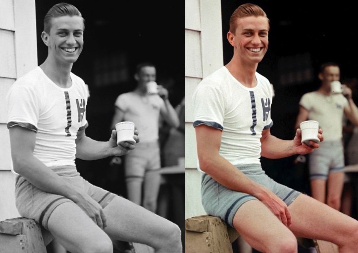 I was interested to learn here that the BBC film “They Shall not Grow Old” was shown in American cinemas in December 2018. Here in the UK it was broadcast to the nation on BBC TV first on Remembrance Day, 11 November 2018 and many times since. It also attracted a lot of comments about the teeth! It wasn’t that they were rotten, but most working class lads had crooked or missing teeth in those days. Even more haunting are the recently colourised portraits of Auschwitz victims which went viral a couple of years ago. On a happier note I am sure one of your thousands of readers will have the skills to take on the challenge of colourising your last photo, and I look forward to seeing the result!