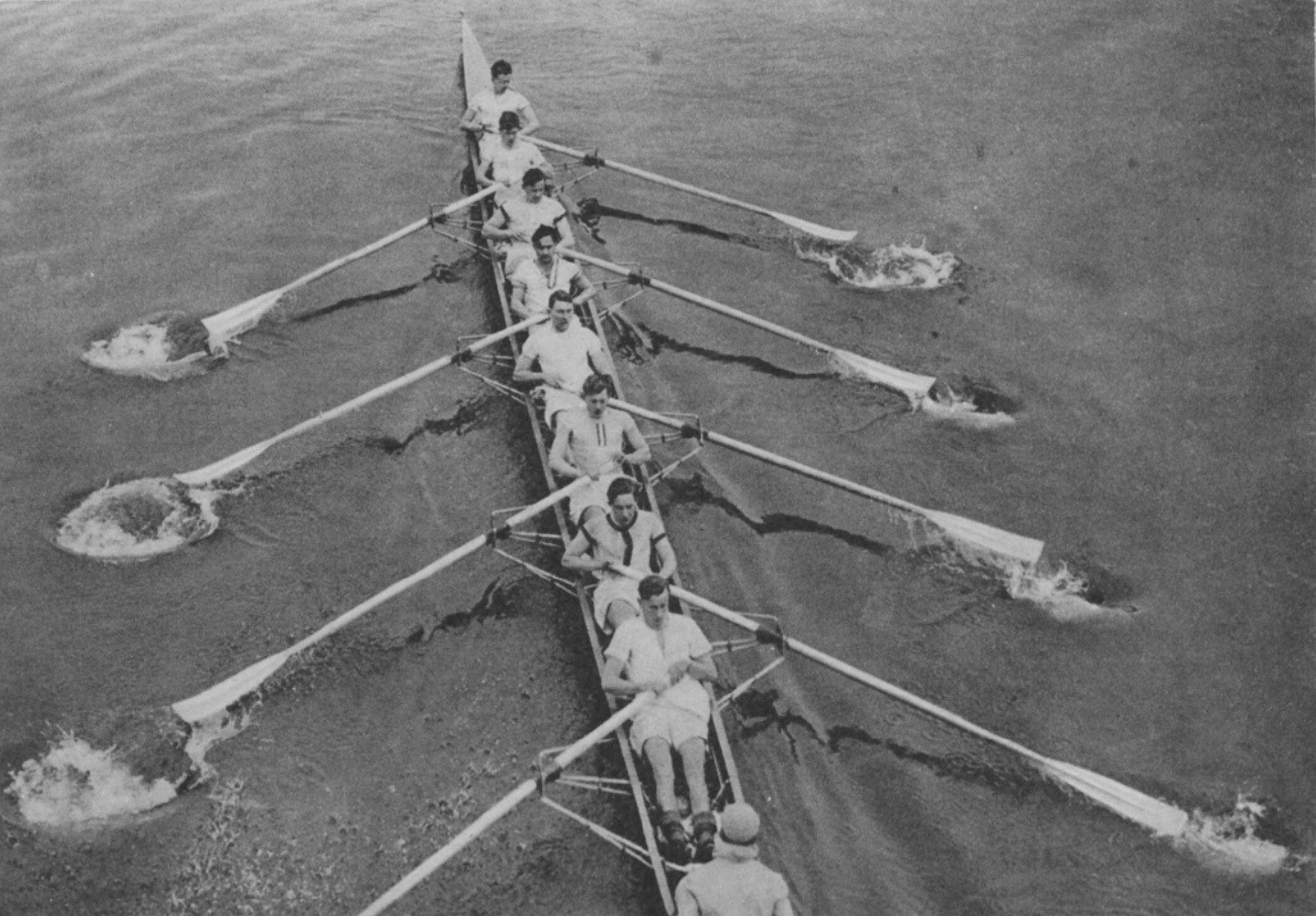 The GB Olympic eight, with Bill in the 7 seat, train at Henley before their departure for Helsinki 1952.