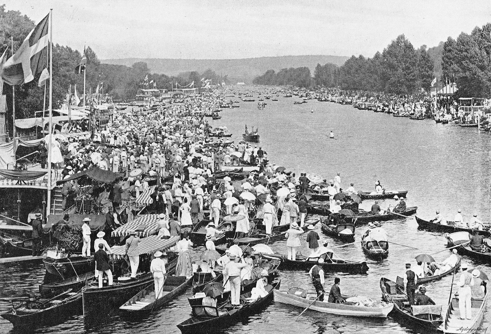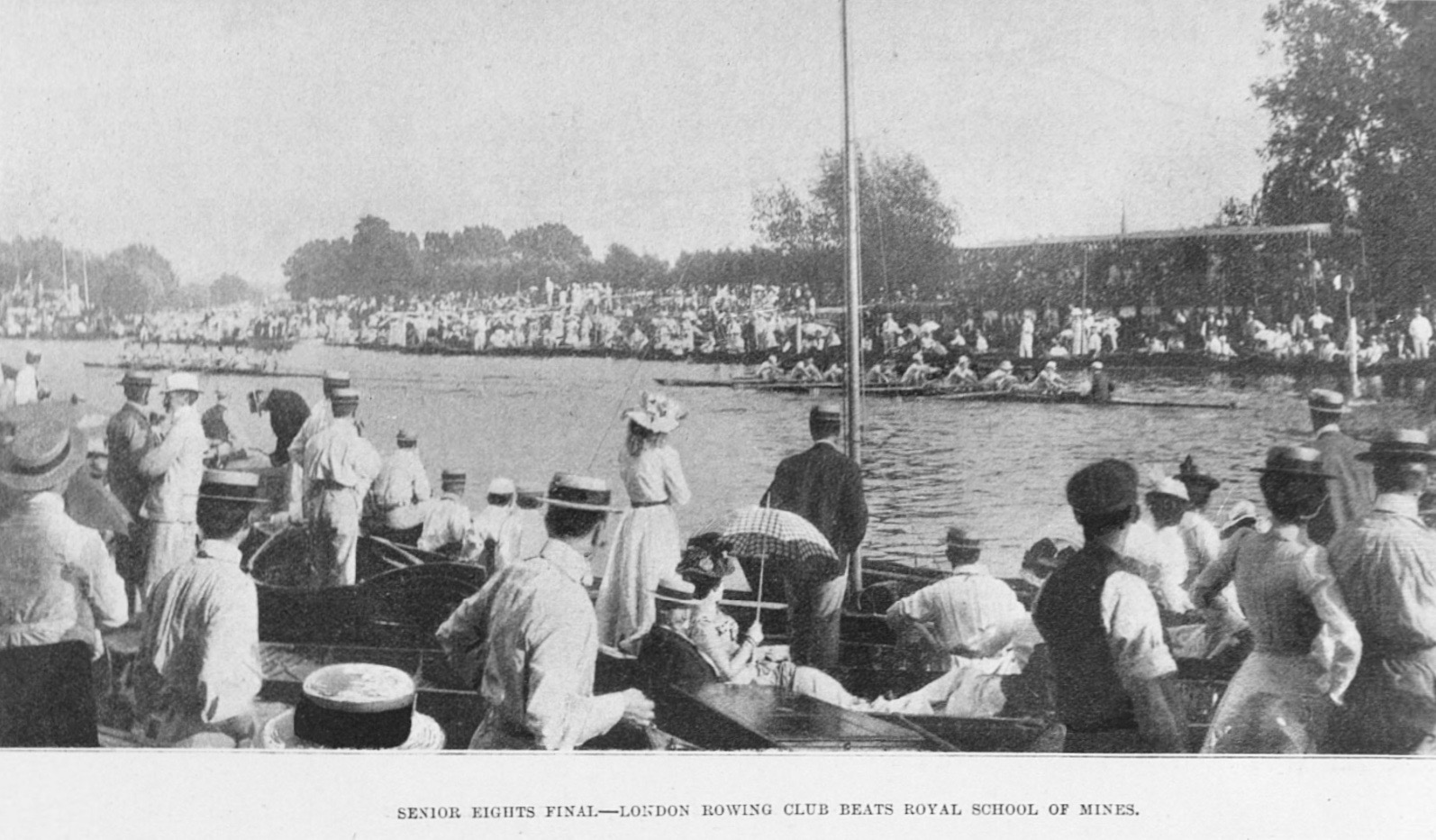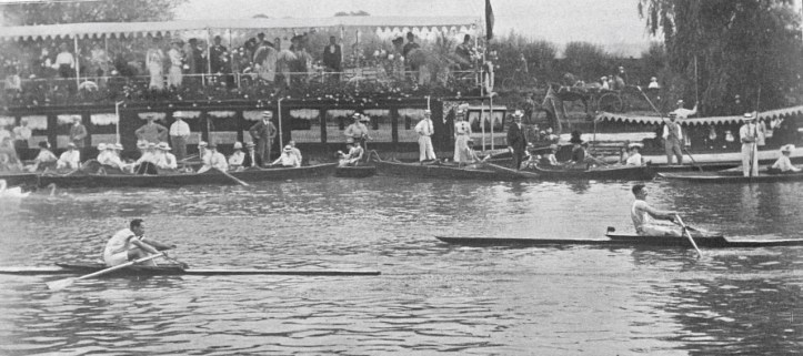 Near the quarter mile, Ashe caused Thompson to foul him by crossing his bows. Thompson… allowed his rival to get well away, thereby giving him every possible advantage of the foul, which at best was a technical one…. (A) neck and neck struggle ensued… Thompson won… by a foot… (Ashe) claimed the race on a foul which was allowed him. It is the best comment on such unsportsmanlike action that his fellow clubmen of the Thames RC… greeted his deed with hisses, which were taken up by the crowd…