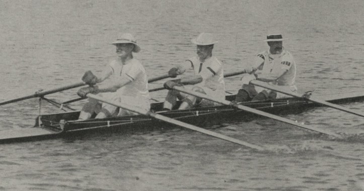 In 1901, Spencer Gollan (bow) and the professional scullers, George Towns (2) and Tom Sullivan (stroke), set a record by sculling a treble the 102 miles from Folly Bridge, Oxford, to Thames Rowing Club, Putney, in 13 Hours and 56 minutes.