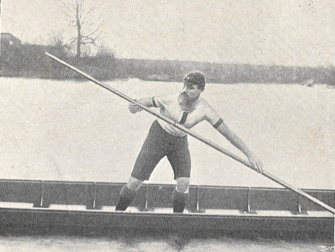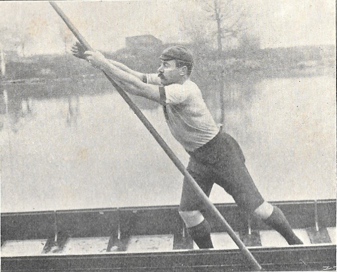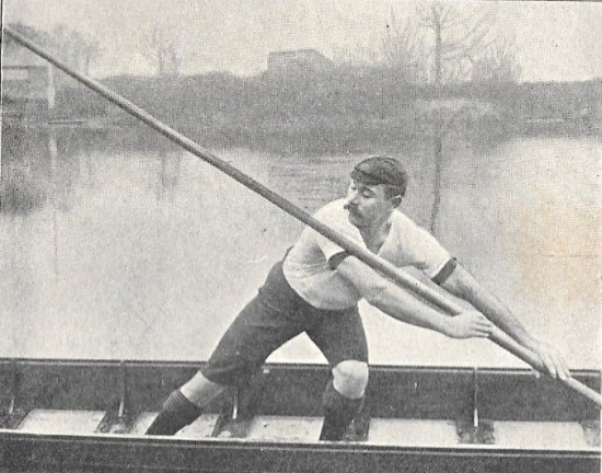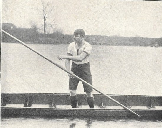 In a series of illustrations in the punting section in Rowing, W. Haines, the professional punting champion in 1891, 1894 and 1897, is showing the punting stroke: