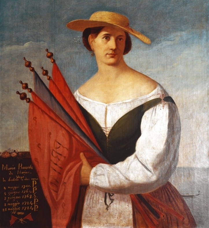 The Venetian artist Giovanni Grevembroch (1731 – 1807) wrote an account of Giulia Fottanella from Mestre, on the Venetian mainland, who won three women’s regattas. However, Maria Boscolo from Chioggia, south of Venice, is more famous, probably because her portrait was painted and is today housed in the Museo Correr on Saint Mark’s Square.