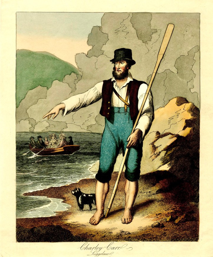 Charley Carr c.1820. Luggelaw Lake, also known as Lough Tay (Irish: Loch Té), is in County Wicklow, Ireland. We know nothing about Charley Carr, save that he is obviously a waterman or ferryman. © The Trustees of the British Museum.