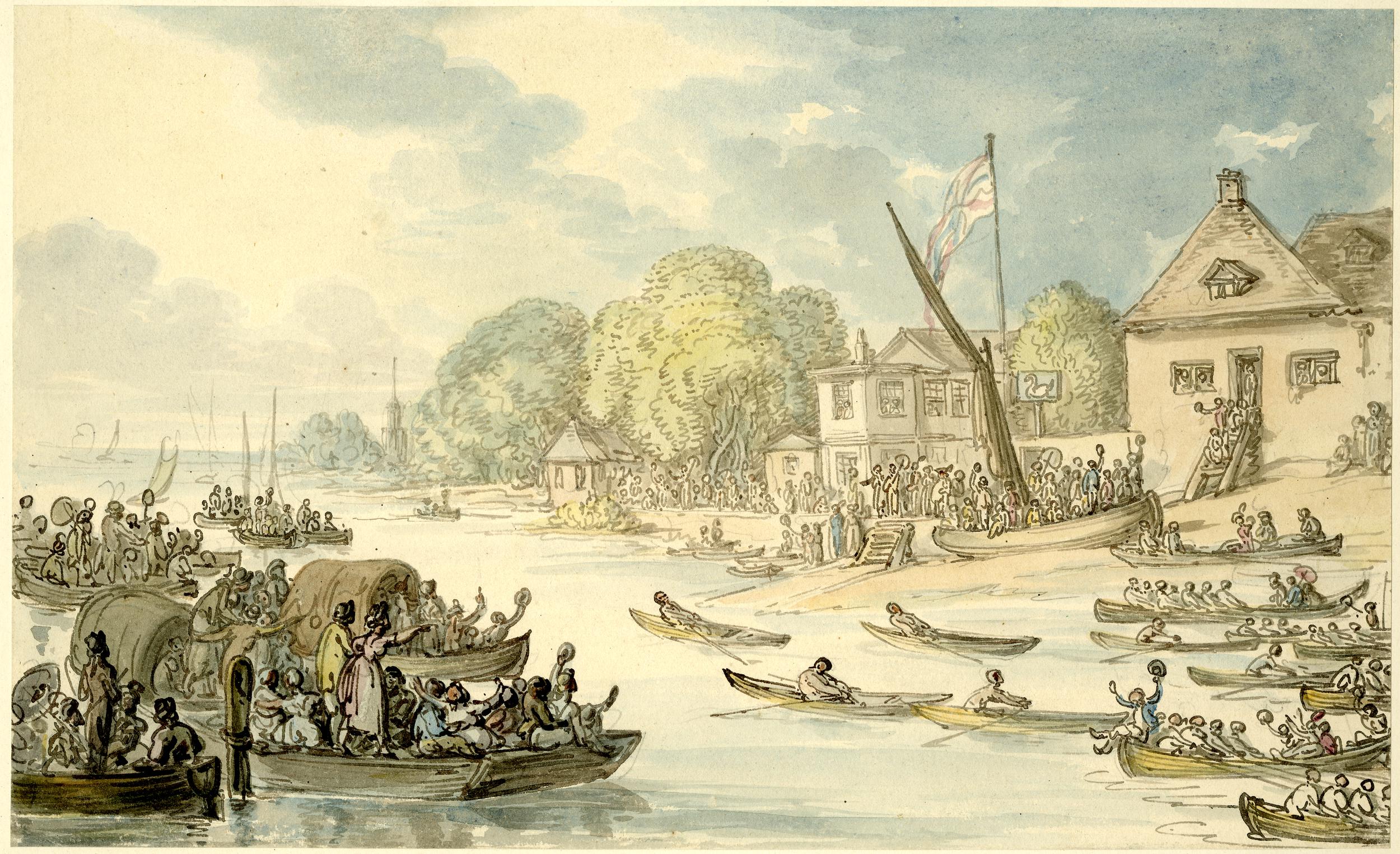 “A Boat Race on the River Isis” by John Thomas Serres, Published March 1, 1822, by I. Whessell, St, Aldates, Oxford. © The Trustees of the British Museum.