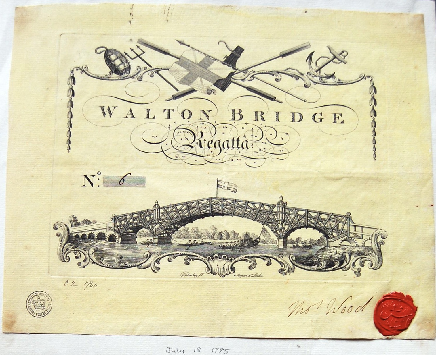 A ticket for the 1775 Walton Bridge Regatta. © The Trustees of the British Museum.