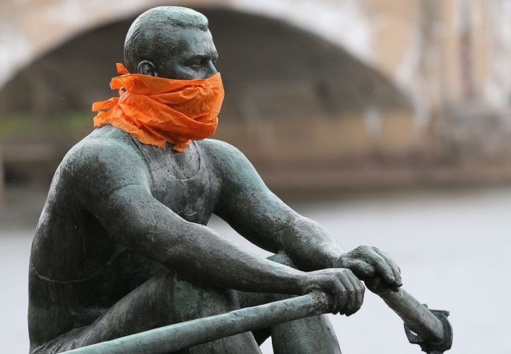 1. Sacrilege most foul by The Philadelphia Inquirer by placing anorak on the statue of John Brendan Kelly. This needs to be remedied by having a pallet of bricks placed at the base of the statue and then being protected by rowers wearing T-shirts “Kelly for Brick Work.” And a temporary guard house being build out of sheet metal by workers wearing T-shirts saying “Knecht for Sheet Metal.” John B. “Kell” Kelly Jr. and William J. “Bill” Knecht were partners in the Double Sculls at the 1960 Roman Olympics.