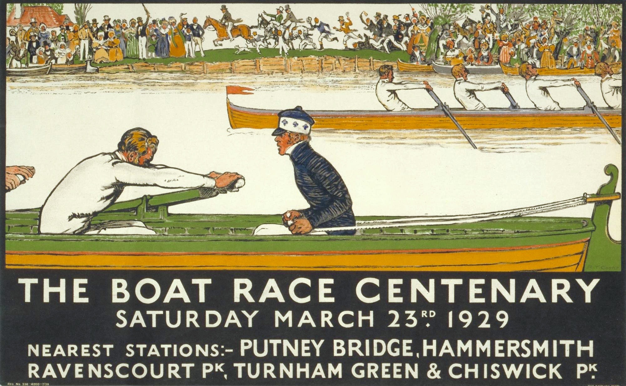 Famously, the Race started when Charles Merivale, a student at St John’s College, Cambridge, and his Old Harrovian school friend, Charles Wordsworth, who was studying at Christ Church, Oxford, agreed that the two universities should ‘row a match at or near London, each in an eight-oared boat during the ensuing Easter vacation.’ The first Boat Race thus took place on 10 June 1829 at Henley on Thames. It is ironic that Harrow, a distinctly non-rowing school, should play such an important part in rowing history.
