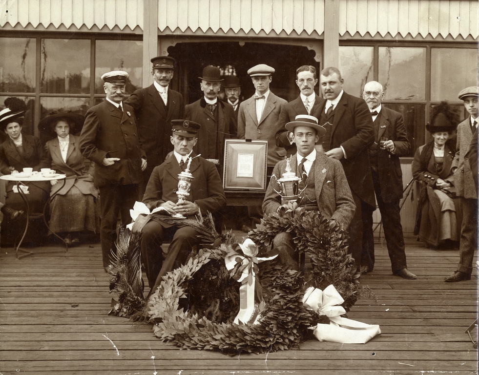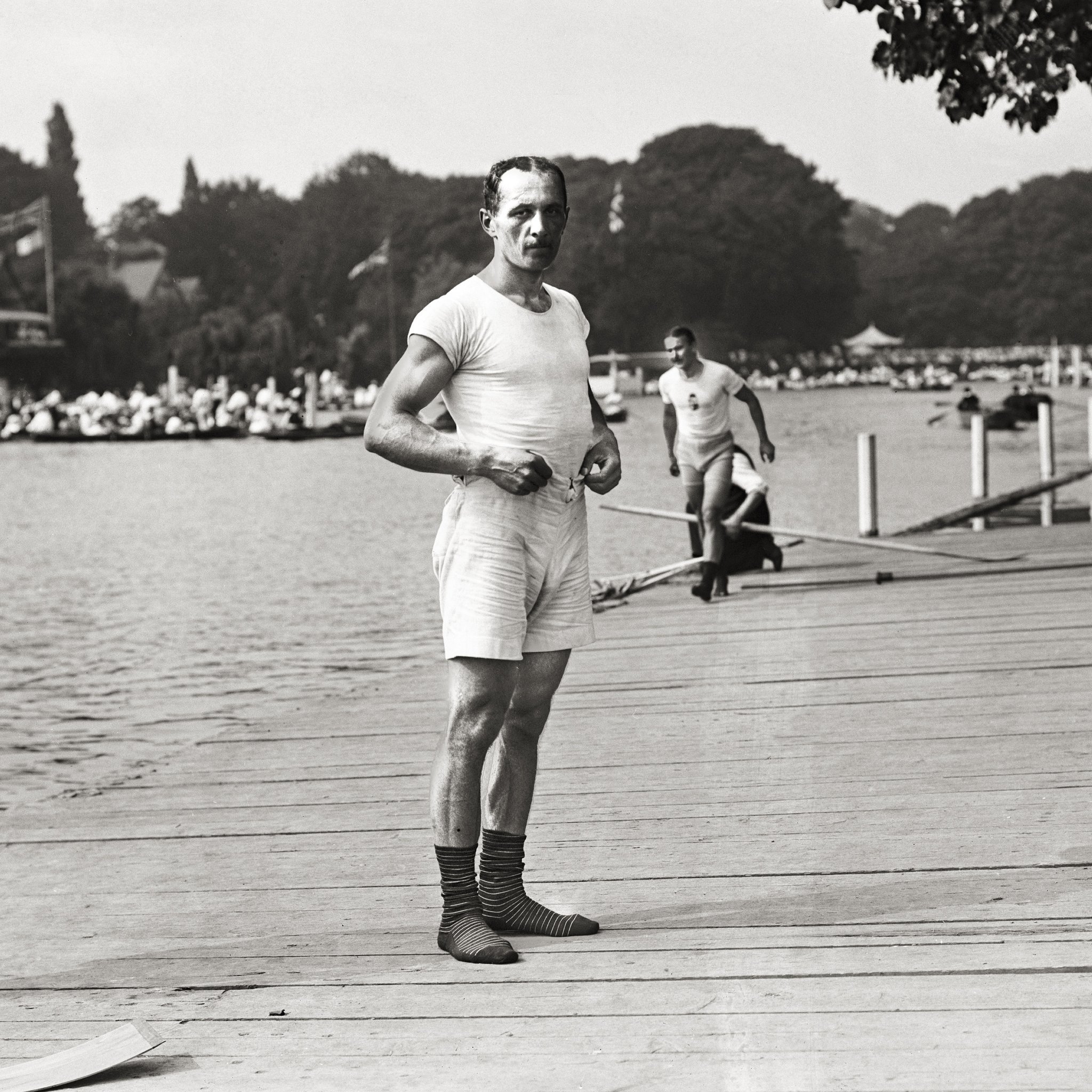 The 1908 Olympic rowing at Henley-on-Thames was a great success for the host country’s crews, who won all the four boat classes: single sculls, coxless pairs, coxless fours and eights. Each nation was allowed to enter two crews, which meant that Britain also took the silver medals in all the events but the eights, where the Belgian crew from the famous Club Nautique de Gand managed to beat Cambridge in the semi-final but lost to Leander’s ‘Old Crocks’ in the final.