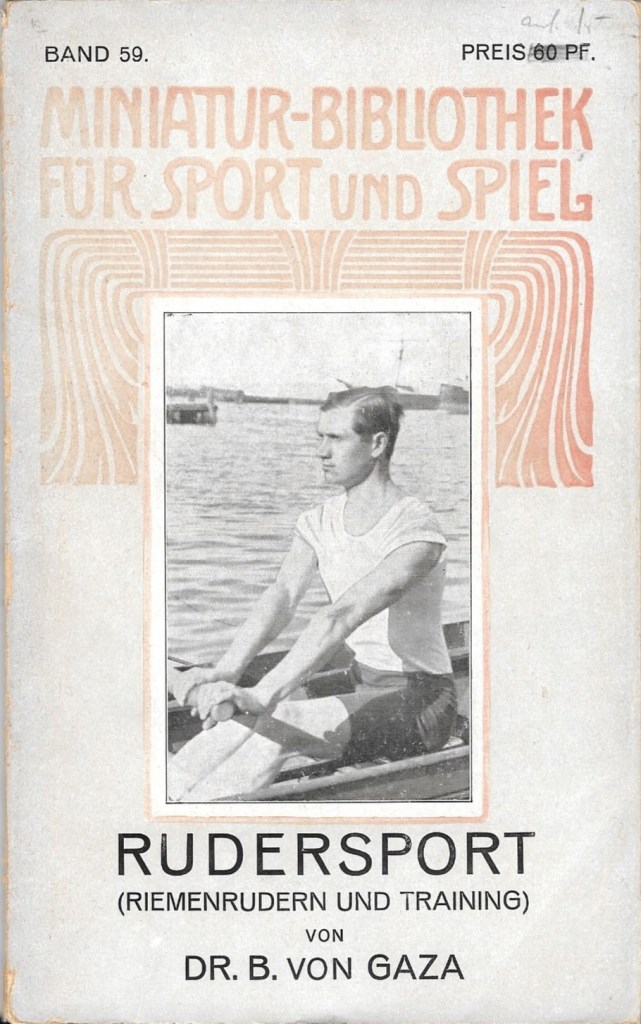 Already in 1907, Bernhard von Gaza had published Rudersport (Skullen und Training), book No. 17 in the series “Miniatur-Bibliothek für Sport und Spiel”. In the same series, von Gaza published Wanderfahrten im Rudder- und Paddelboot, book No. 49, and Rudersport (Riemenrudern und Training), book No. 59, which I have in my bookshelf. This book was published in 1914, although my copy is of a later edition.
