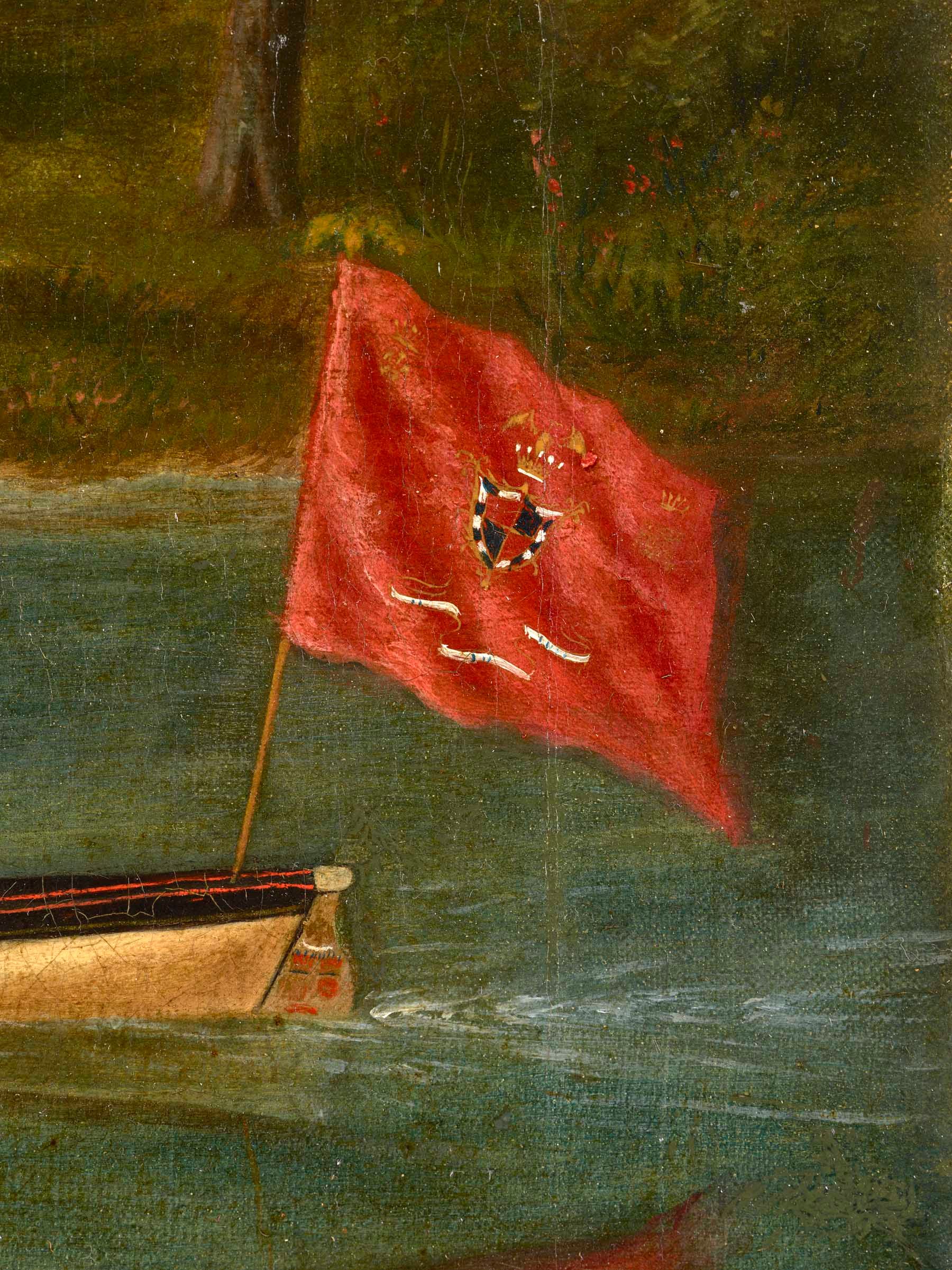 I will explain later why I asked John to snoop around on my behalf, but for now let me relate to you some of the fruits of my subsequent research. After a year of shameless begging, the waves suddenly parted with the intervention of another good friend, Mike Sweeney CBE, today President of Leander Club, and I was allowed to commission and pay for a very high-resolution scan of the painting in the interest of history. That scan has provided answers to several questions and posed several more. The painting is not signed, and other than the image itself, there are no markings or clues on the canvas or frame, but the information posted in the L.M.B.C. boathouse would turn out to be important in accurately identifying its subject.