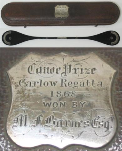 A presentation prize from one of the early regattas is held by Carlow County Museum. It was won by M. F. Barnes at the Carlow Regatta in 1868 and is a miniature kayak paddle presented for a canoe race.