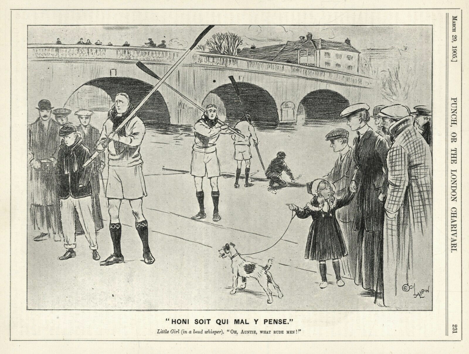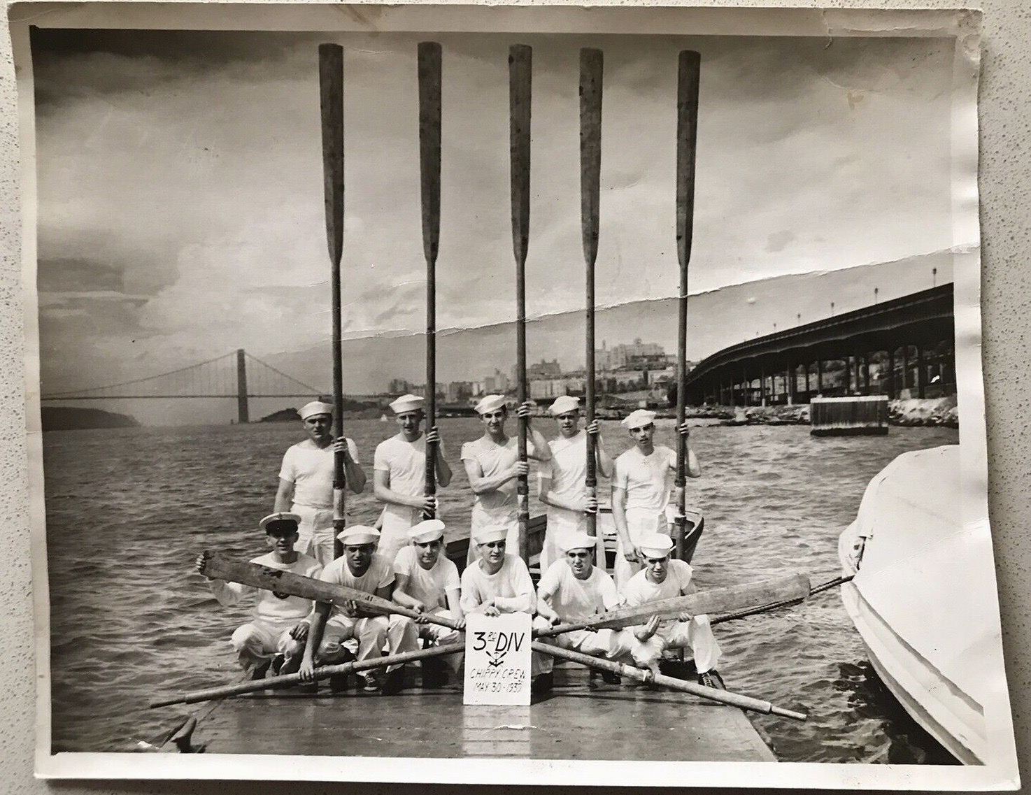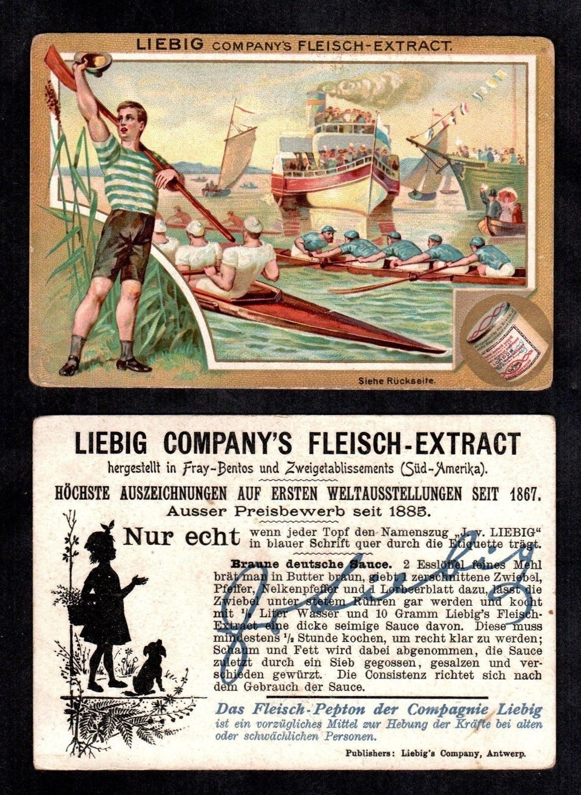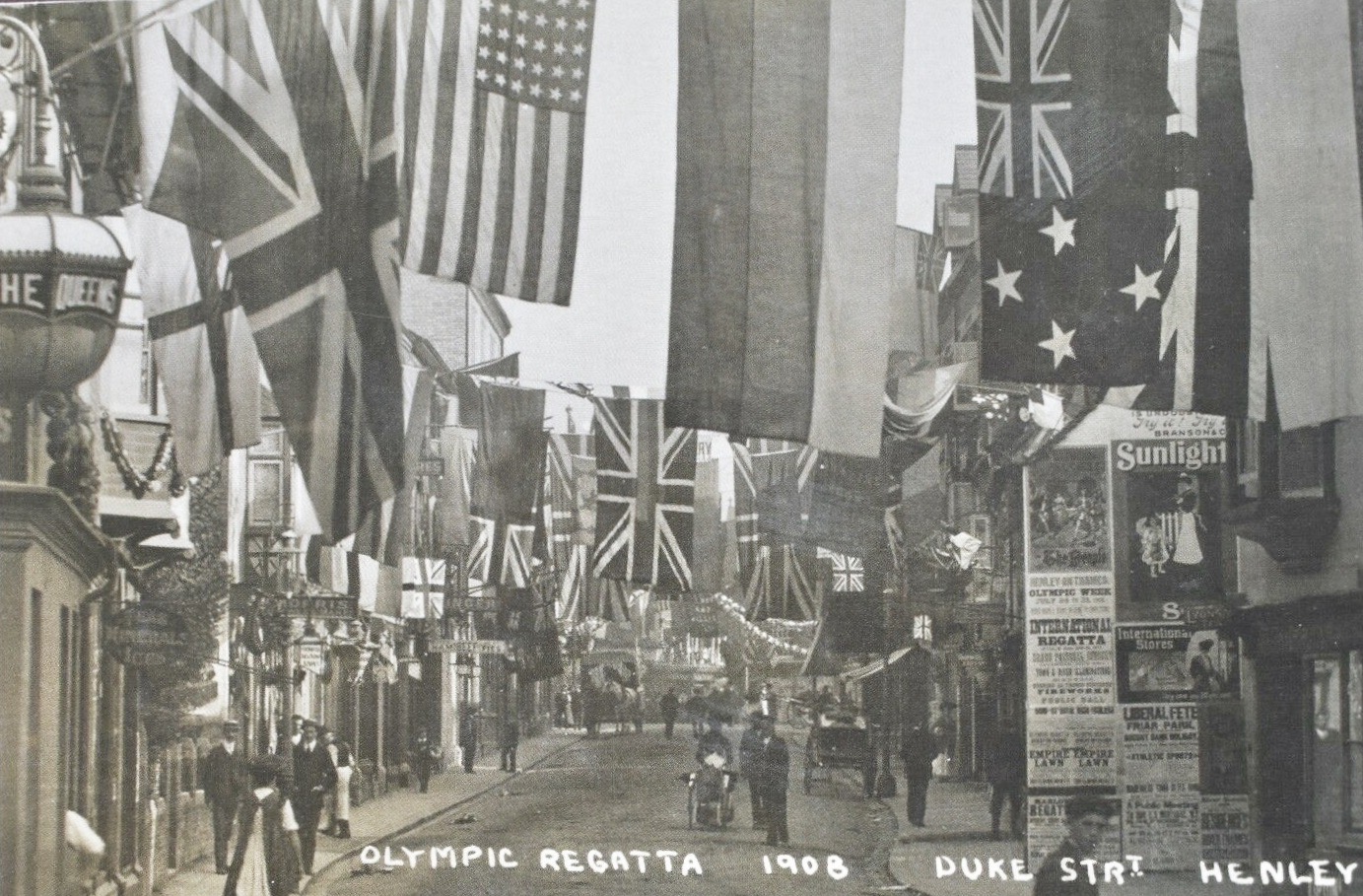 Yale 1911 shows us what they are made of.Potomac BC 1919 forgot their boat.A 1978 press picture of Dr Benjamin Spock taking his daily scull on Beaver Lake, Arkansas. Spock was the paediatrician and radical activist who wrote the enormously influential and later controversial “Common Sense Book of Baby and Child Care” (1946). In 1924, he was in the Yale crew that represented the U.S. in the Paris Olympic Eights and won Gold.Though not exactly “Daisy Dukes”, shorts for men in 1905 were still considered daring. “Honi soit qui mal y pense” is Old French and is usually translated as “shame on anyone who thinks evil of it”.A postcard from 1909 showing two heroes of the hour, winners of that year’s Boat Race. Oxford’s President, Alister Graham Kirby, later competed in the 1912 Olympics and died of illness on active service during the First World War. James Angus Gillan had previously rowed in the 1907 Boat Race and had won the Stewards’ and the Visitors’ at Henley and Gold in the four at the 1908 Olympics. Later, he won Henley’s Grand and Gold in the eight at the 1912 Olympics.A postcard showing Duke Street in Henley-on-Thames suitably decorated for the 1908 Olympic Regatta that was held over part of the Henley course.The first boat club for Cambridge’s Trinity College, Trinity Boat Club, was founded in 1825 and was open to all members of the college. After Third Trinity BC was started in 1833 for those in college who had attended Eton or Westminster, the original club became known as First Trinity. A well-supported local regatta sometime before the First World War. What was “FR & SC”?Another popular Edwardian regatta, this one on the Isle of Man.As the sign says, these sailors are members of the “Chippy Crew” photographed on 30 May 1939. The crew are, rowing historian Bill Lanouette tells us, at one of five boathouses that lined the Hudson River just south of Spuyten Duyvil, where the Harlem and Hudson rivers meet. George Washington Bridge is in the background.A German press photograph from 1938. The information on the back says that this shows the crew from the Berlin Rowing Club “Hellas” who won the “Adolf Hitler Fours” at the “Great Berlin International Rowing Regatta” on 26 June.A photograph showing Corpus Christi College going “Head of the River” in the 1885 Summer Eights at Oxford. The young men from Barry Rowing Club who won “Maiden Fours” at the Taff Regatta, Wales, in 1912.An early example of advertising using rowing to suggest that a food product promotes health and strength. “Liebig’s Extract of Meat Company” was an Anglo-German venture that was the originator of the “Oxo” products.This scene from “An Edwardian Summer” (sometime between 1901 and 1910) shows the Boat Race finishing at Chiswick Bridge – a span built in 1933. Too late to recall the other 3,999 plates?This promotional picture for the “Gyroducing” rowing exerciser of the 1950s indicates that it was more comfortable than today’s “Concept 2” type machines – even if a suit and tie had to be worn.