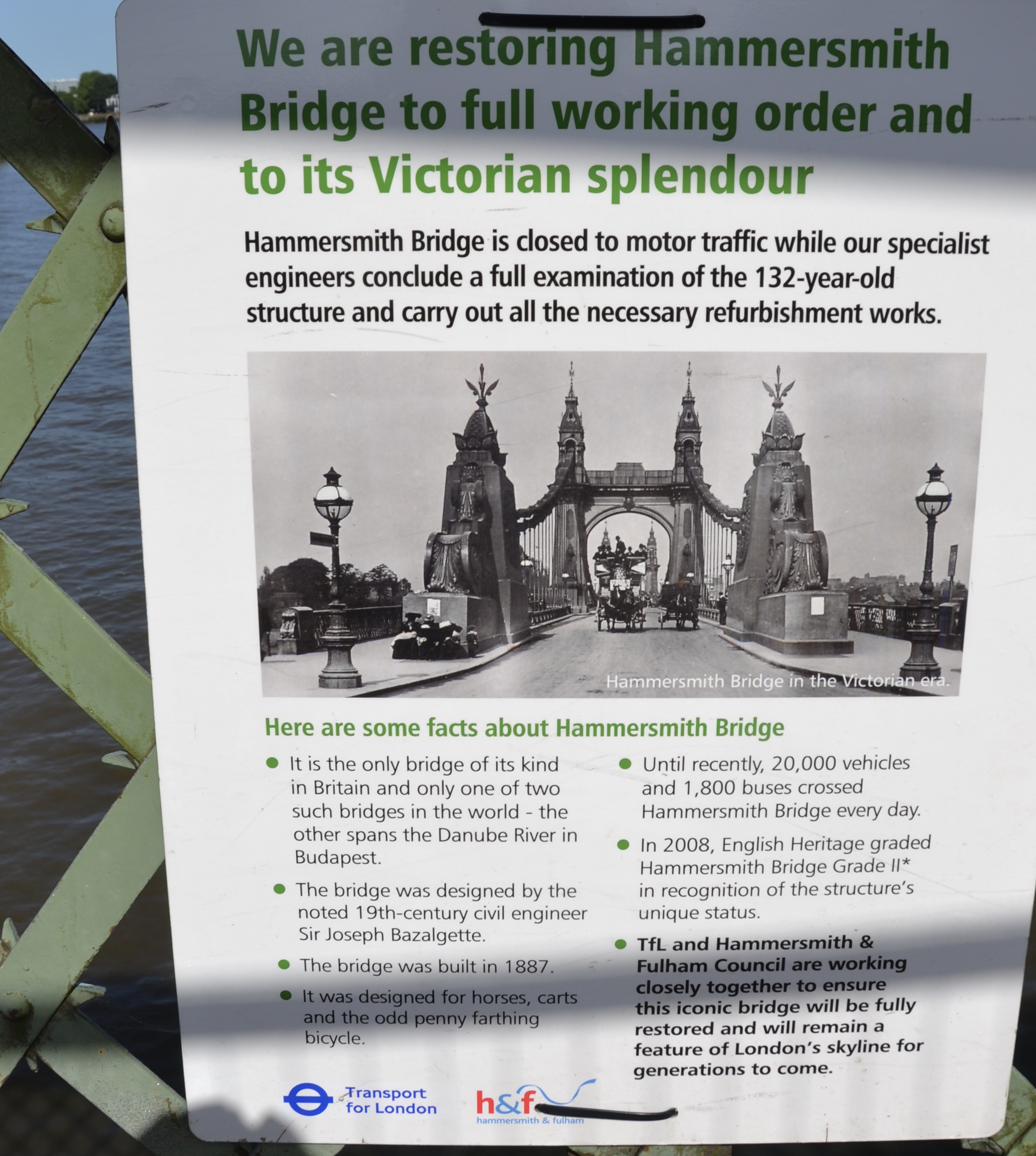 On 15 July, Hammersmith and Fulham Council announced that, after 11 months, the bridge would reopen on 17 July for cyclists and pedestrians to cross and for boats to go under. The PLA, seemingly never consulted about the closure decision, turned their Hammersmith Bridge navigation lights green early on Friday, the 16th.