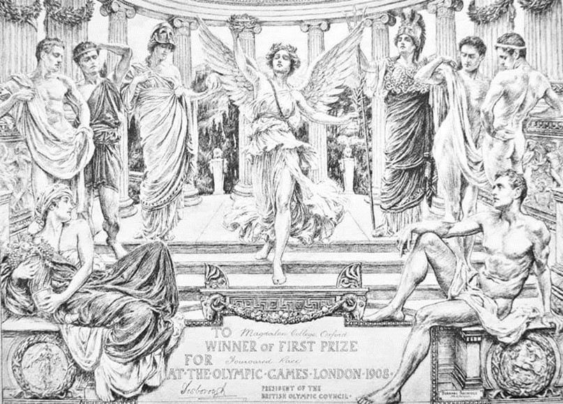 The statue was held by the winning eight until the next Olympic Games. It was awarded at the 1908 London Games, the 1912 Stockholm Games and the 1920 Antwerp Games. At the 1908 Olympic Games in London, it was presented to the victorious Leander Club eight by Lady Desborough.