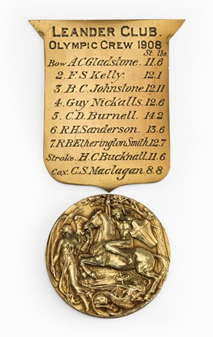 The sixteen individuals who won rowing gold medals received another memento of their victories. They each received a silver-plated oar in a red leather presentation case.