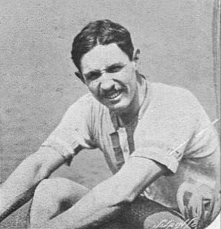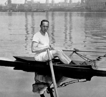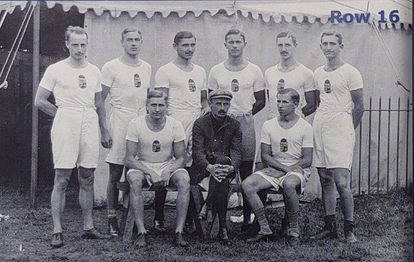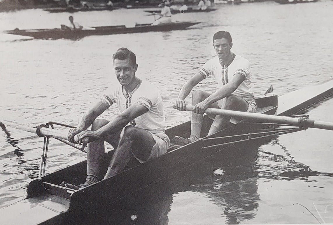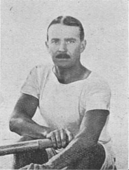 In the single sculls, nine competitors went to the start: Canada, Hungary and the UK entered two boats each, with Belgium, Germany and Italy entering the others. The first round consisted of one heat between von Gaza (Germany) and Killer (Hungary). The official result was that the German won ‘easily’. However, the race was not rowed out as Killer did not live up to his name and pulled into the bank as soon as von Gaza crossed the finish line. An uneventful race per se, but the two competitors provide us with one of the more interesting photographs of the regatta. von Gaza has featured on HTBS several times before, including a March 2021 article by Göran R Buckhorn: “Bernhard von Gaza: Olympian, Champion Sculler, Writer and Soldier”. Neither sculler had a long life: von Gaza was killed in WWI in September 1917, aged 36; Killer quit this life in December 1926, aged 45.
