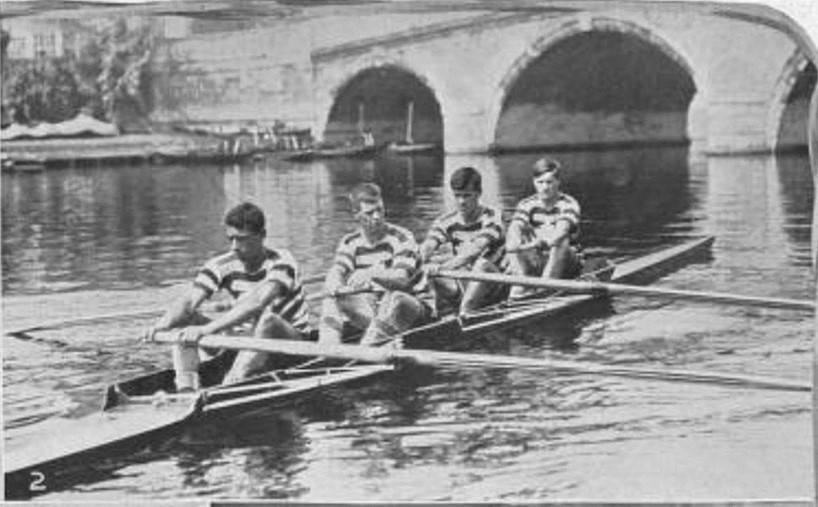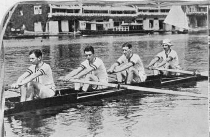 Like the pairs, the fours event was a straightforward affair: four entries in total, requiring two semi-finals and a final. The rules did not allow crews from the same country to meet in any race other than the final. Thus, the two UK crews faced the Canadian and the Dutch crews in the semis. Magdalene College, Oxford, would certainly have been favourites to add the Olympic Title to the Stewards’ Challenge Cup they had won at Henley Royal Regatta a couple of weeks earlier.