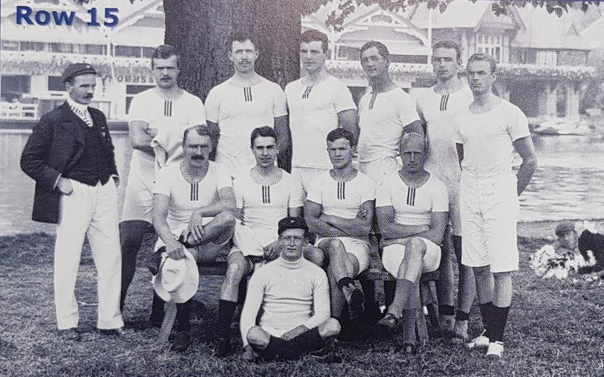 The Belgians were familiar with the Henley course, having won the Grand Challenge Cup at Royal Regatta in 1906 and in 1907 (obviously, not the same crew). Foreign crews were barred from the 1908 regatta and so, if they had wanted to, they would not have been able to defend their title. Cambridge University Boat Club beat their rivals from Oxford by two and a half lengths in the 1908 University Boat Race and was select as the UK’s first crew. Leander Club was chosen to put a second crew together – Britain’s rowing reputation depended on them defeating the Brave Belgians.