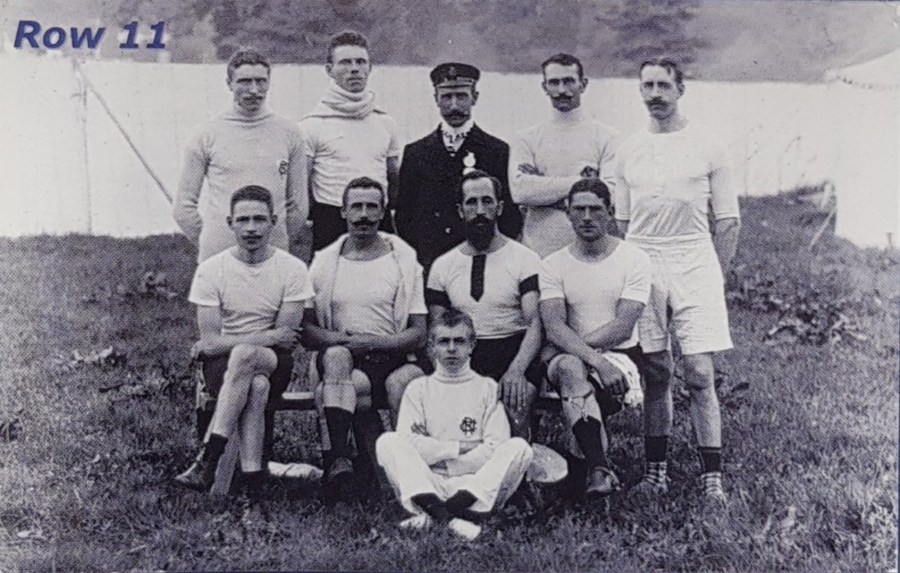 Of the 81 competitors filling the 87 seats at the Olympic Regatta of 1908, pictured above are 76 of them. Missing are the following: Gino Ciabatti (Italy 1x), Jozef (or Joseph) Hermans (Belgium 1x), Willie Düskow (Germany 2-) and Leander Club’s, Philip Filleul and Harold Baker (4-).