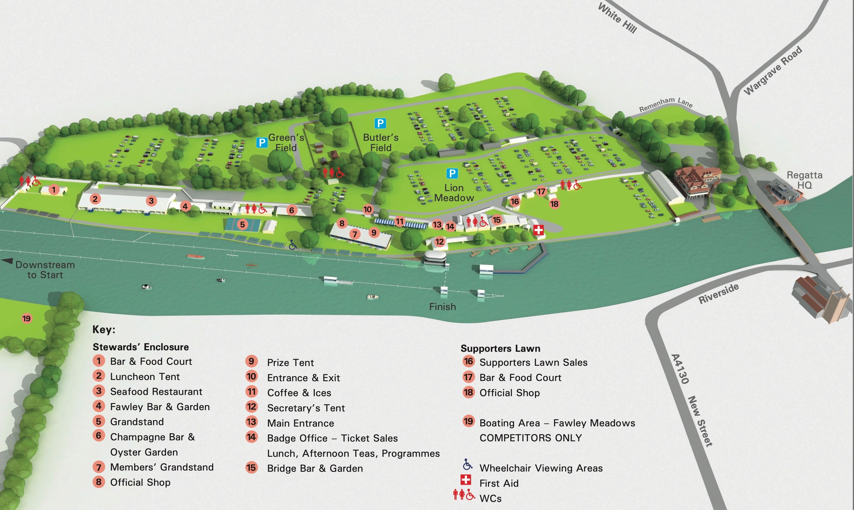 The land usually taken by the public Regatta Enclosure has been re-allocated to the Stewards’ Enclosure to provide some extra space and an additional area for refreshments. However, there will be a new enclosure, The Supporters’ Lawn, on the traditional footprint of the boat tent, next to Leander Club. The intention is that this area will provide the friends and families of competitors a base from where they can cheer on their crews. Currently these tickets have been offered to those clubs that have entered the regatta, but they will soon go on general sale.