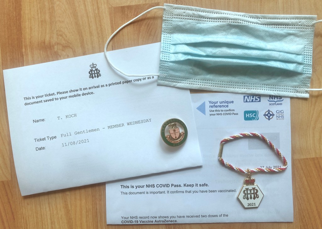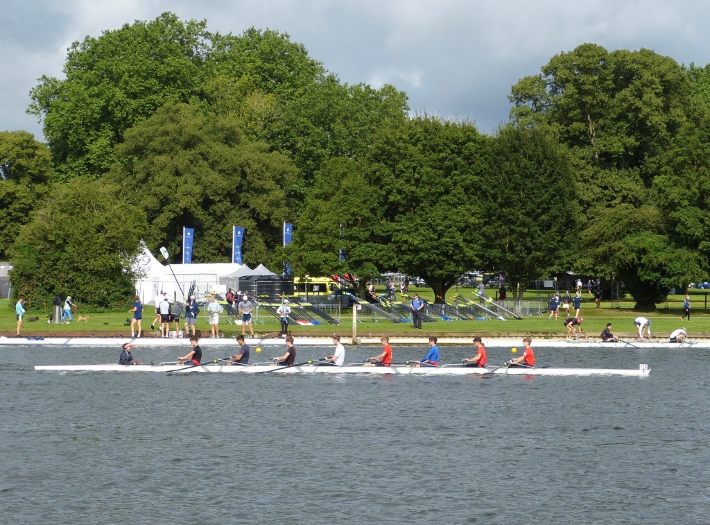 Despite the fact that I was fully prepared for a very different regatta this year, on Sunday evening I arrived in Henley-on-Thames and was slightly shocked to find that, two days before the start of racing, the river was almost deserted. The new boating area on Fawley Meadows was closed to competitors, the course was not operating under “regatta rules” and many crews were doing their final preparations elsewhere. Further, I suspect labour shortages caused by the pandemic were causing many aspects of the infrastructure to be very late in completion. However, on Monday, the boating area was open, boats could row up the course between the booms and things began to look a little more normal.