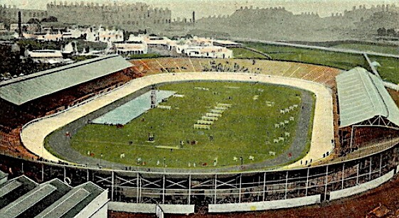 Both a running track (24 feet wide with a lap of 586 yards 2 feet, or exactly one-third of a mile), and one for cycling (35 feet wide and 660 yards in circumference, making a banked lap of three-eighths of a mile) were included, plus wrestling platforms and a swimming pool (100 metres in length; very much better than Highgate Ponds) with a dramatic demountable diving tower, and the centre field useable for Olympic field events later in the year.