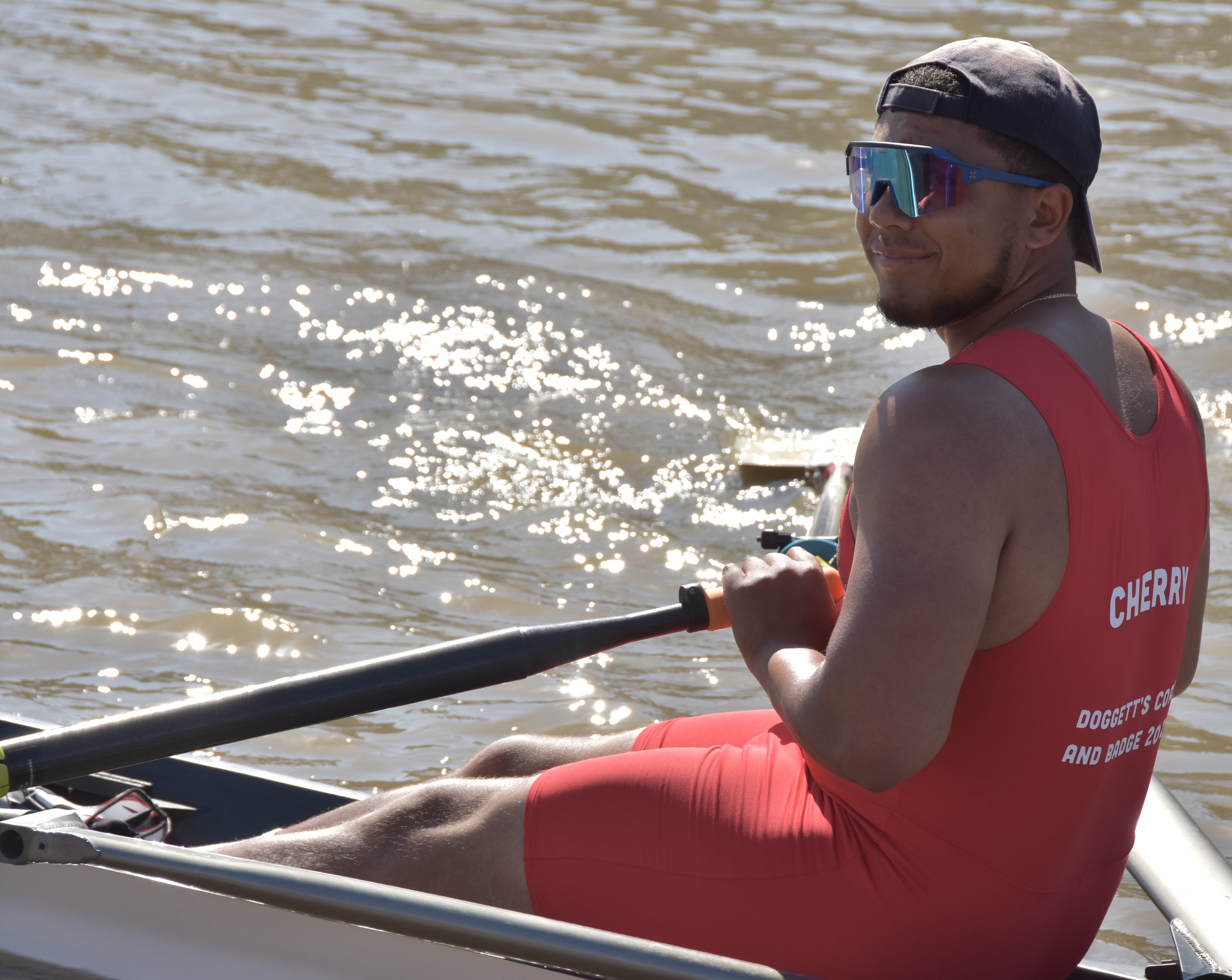 Ken Dwan and Max Carter-Miller.I knew that I had to go off hard and then settle. I stuck to the race plan and tried to look where I was going this time… (In June’s race) my steering was described as “erratic”… it could still use a little bit of work but it was a lot better this time… The 2020 Doggett’s was my first ever race… (but in preparation for this year’s race) I raced at Molesey and Peterborough… Having that little bit of race experience was valuable… Having someone next to you, you panic (but) after you’ve raced a couple of times, you learn to settle yourself… Maybe in four year’s time, I’ll do the Diamonds at Henley, but there’s a lot of hard work to do first…