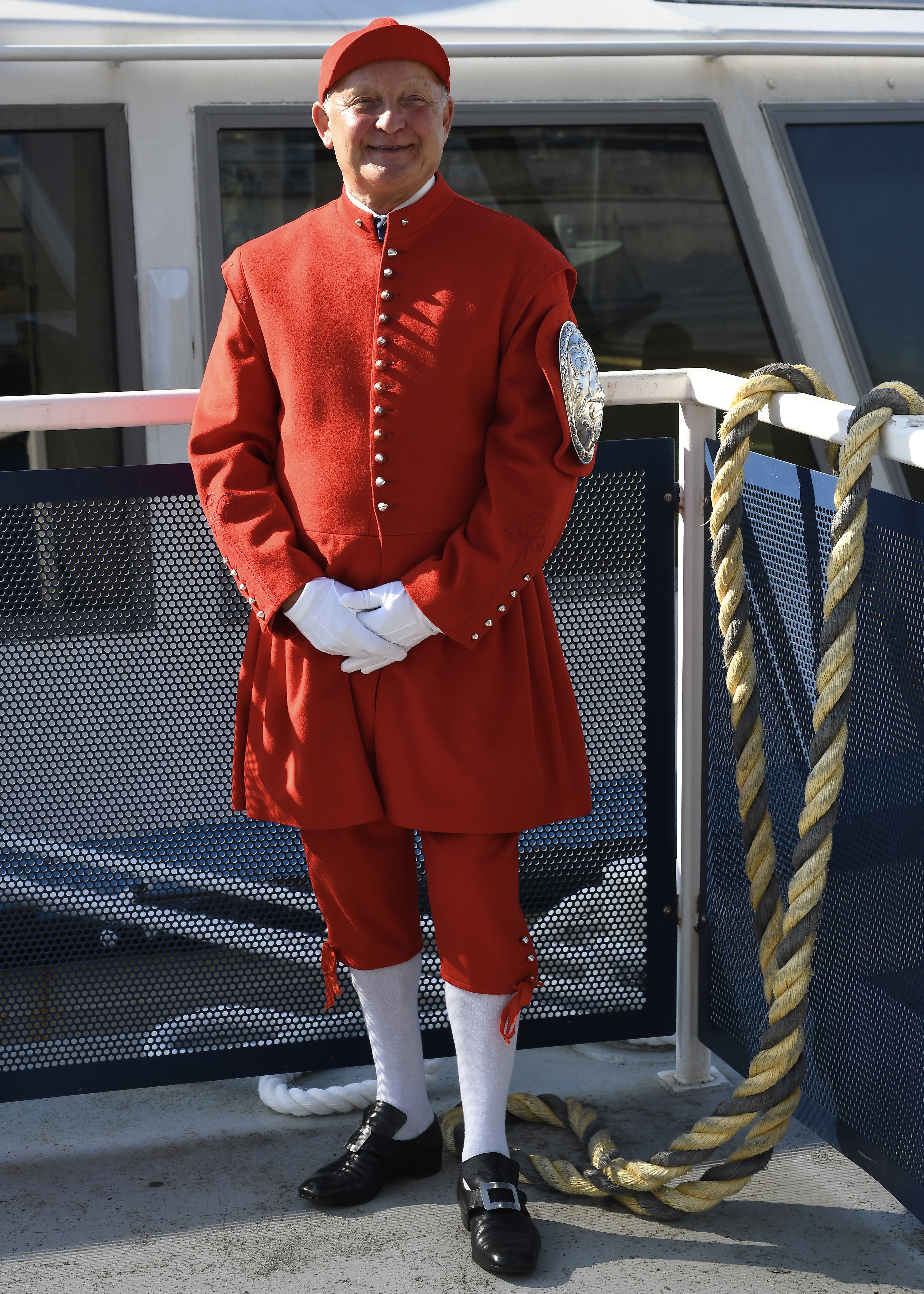 Doggett’s winner in 1984, Simon McCarthy, wearing the comparatively newly designed blazer that all who have competed for Doggett’s can wear. Picture: Kerry Ahearn.