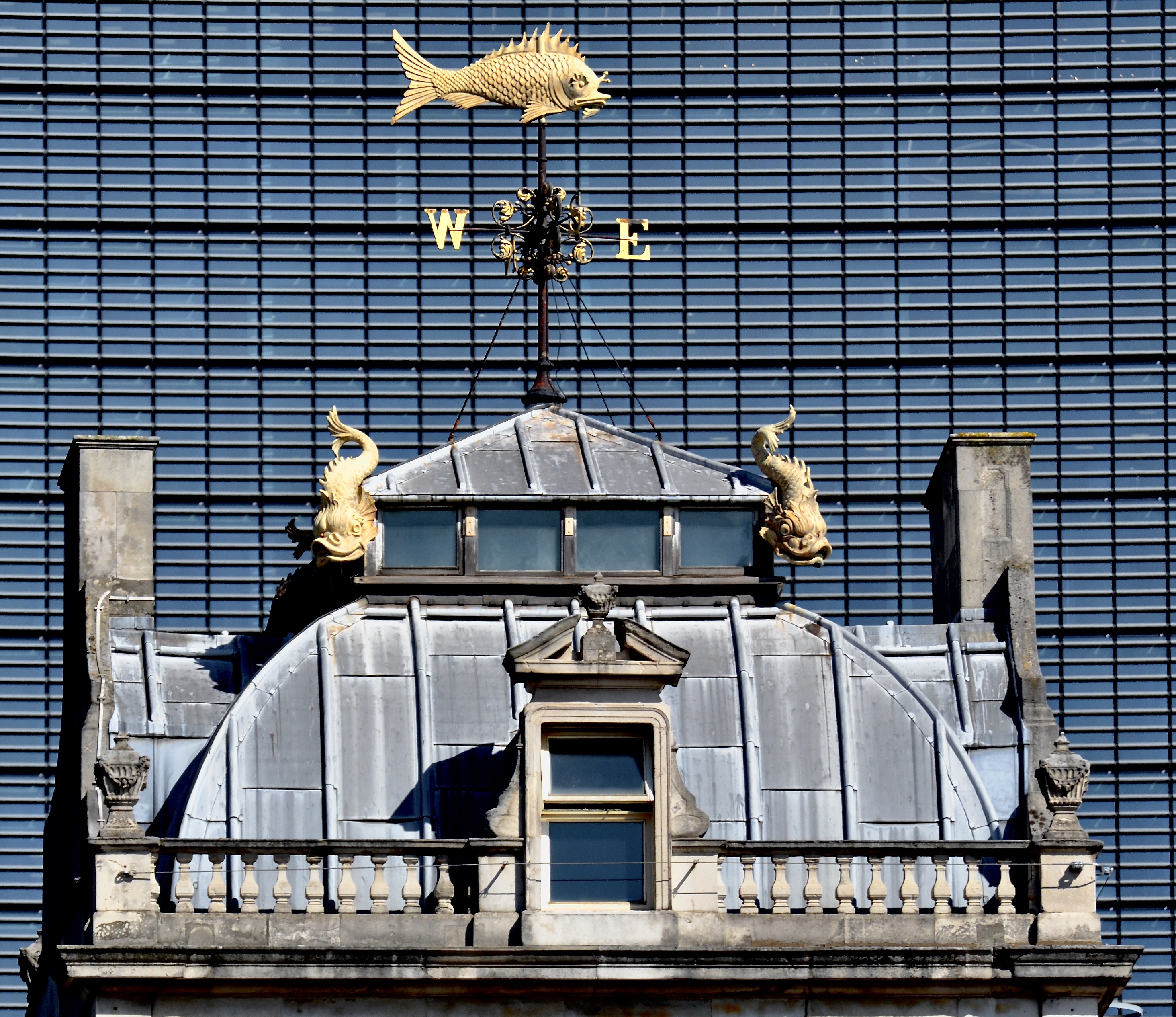 Flying fish. The Doggett’s competitors gathered opposite the Old Billingsgate Fish Market, a small part of which is shown here. It was London’s fish market from the late 15th century until trading ceased there in 1982. The existing hall dates from 1877 and it is now an events venue.
