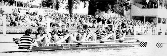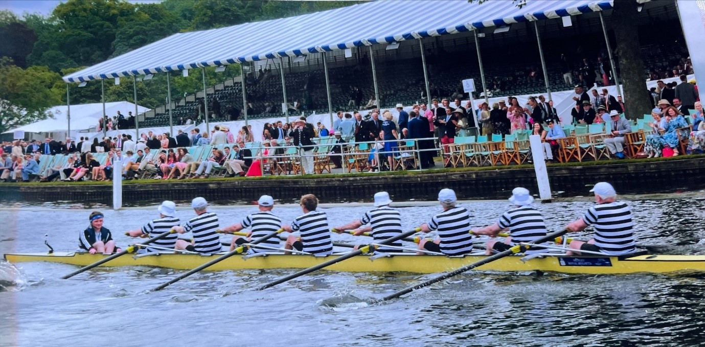 In 2017, the crew, minus their coach, Robin Tamplin, who died in February 2017, was invited to row over the Course on the Saturday of HRR. The invitation from Sir Steve Redgrave included bringing over a boat called Robin Tamplin so that he could be there in spirit. David Hickey thanked SSR for the invitation and the permission to ‘row over.’ He also mentioned how knackered the crew was; Sir Steve raised his eyes to heaven and smilingly said: ‘that is why the Stewards call it a “Row Past” and NOT a “Row Over”. Apparently, crews are not supposed to row over the full course during these celebrations.