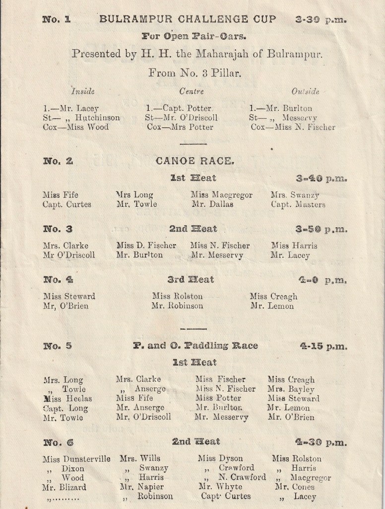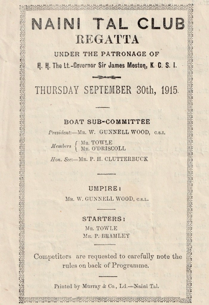The extent of rowing activity by women is perhaps illustrated by a regatta programme that I recently acquired, one for the Naini Tal Club Regatta of 30 September 1915 (though there may be some distortion as a number of the men would be away at war).