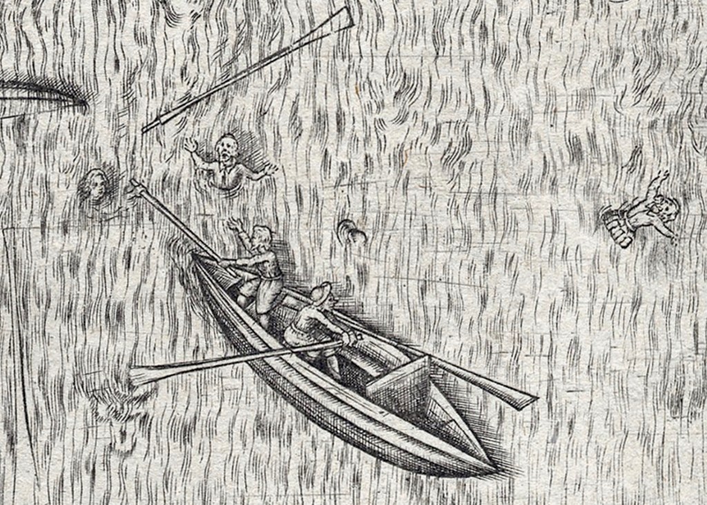 Another detail from Norden showing the result of a less-than-skilful attempt of passing under Old London Bridge.