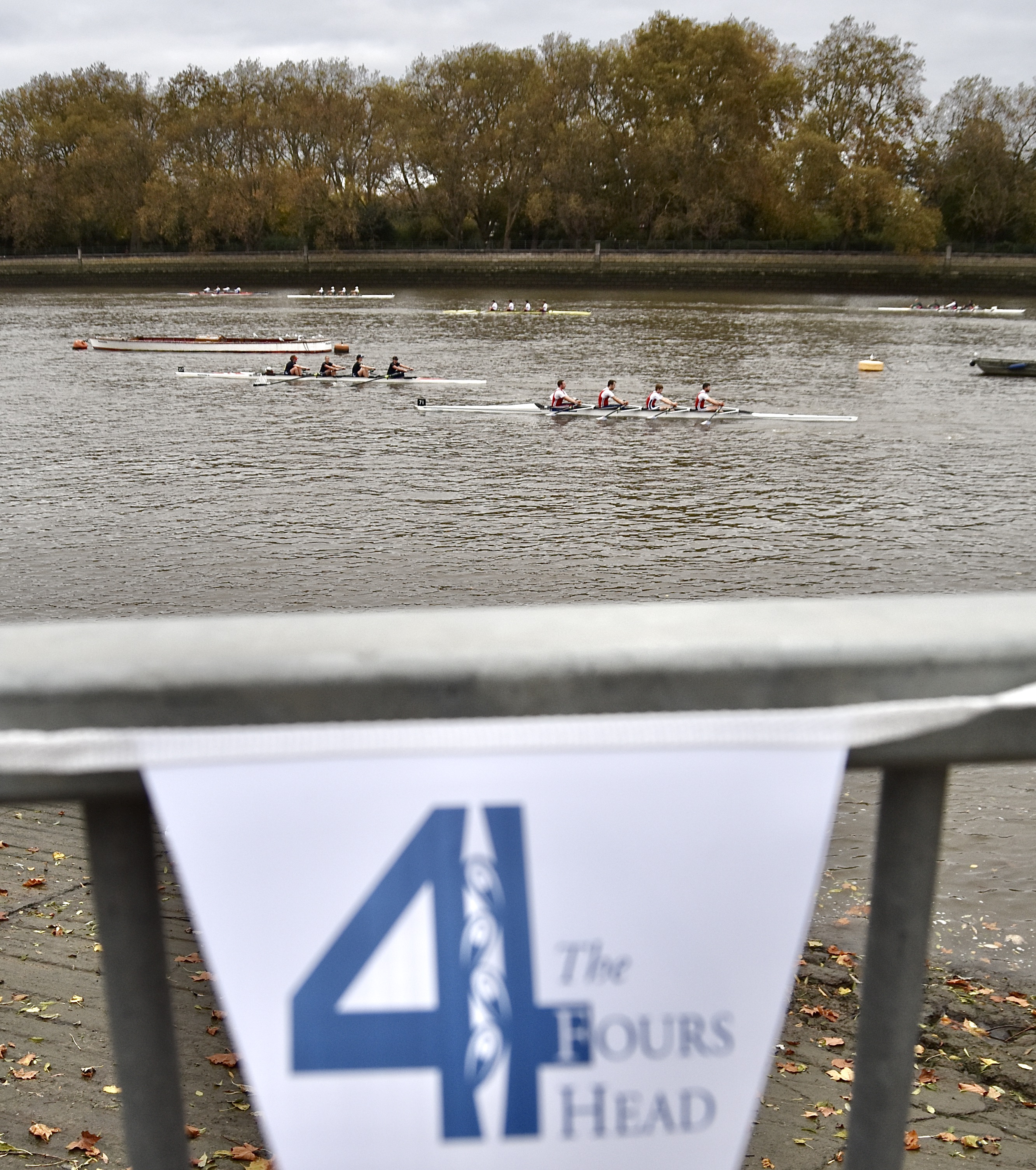 A head race for fours over the Thames Tideway Championship Course can trace its origins back to 1955 when it was known as “The Tradesmen’s Rowing Clubs’ Association Head of the River Fours”. In 1962, the race became known simply as “The Head of the River Fours”. When local brewers Fuller Smith and Turner began their sponsorship of the race in 1979, it became the “Fuller’s Head of the River Fours”. In 2019, Fullers ended 350 years of family ownership when it gave into a “fabulous offer” from the Japanese Asahi company. Sponsorship seems to have ended with this change and the event was renamed “The Fours Head” in 2020 in recognition of the fact that this was the informal name that most people used. At the same time, it adopted a new logo designed by Annabel Eyres and it dropped the Fullers colours of red, green and gold and adopted the palette of light blue, white and yellow. A more detailed history is on the Fours Head website