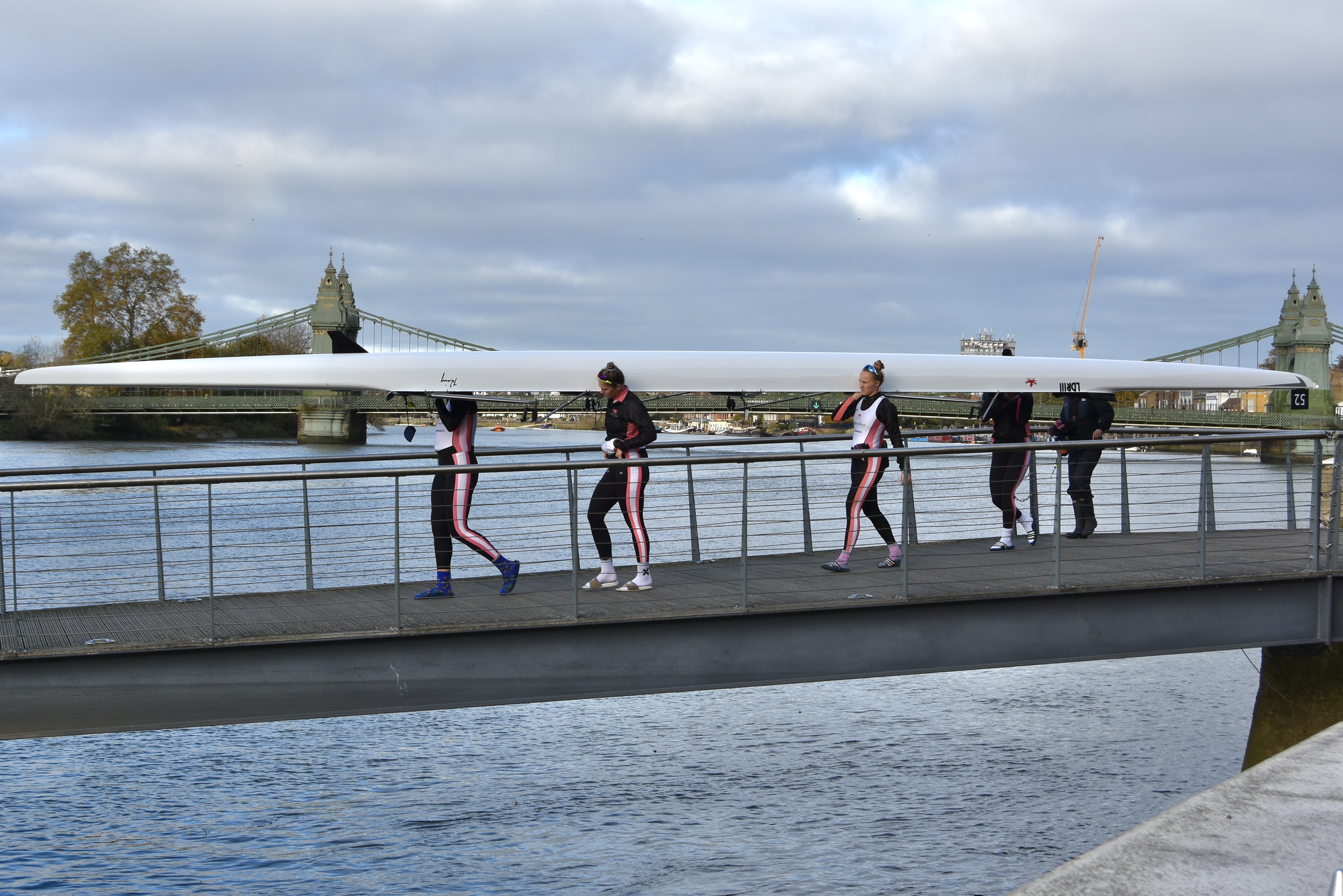 Imperial College London D, Women’s Academic 4+, passing under Hammersmith Bridge.