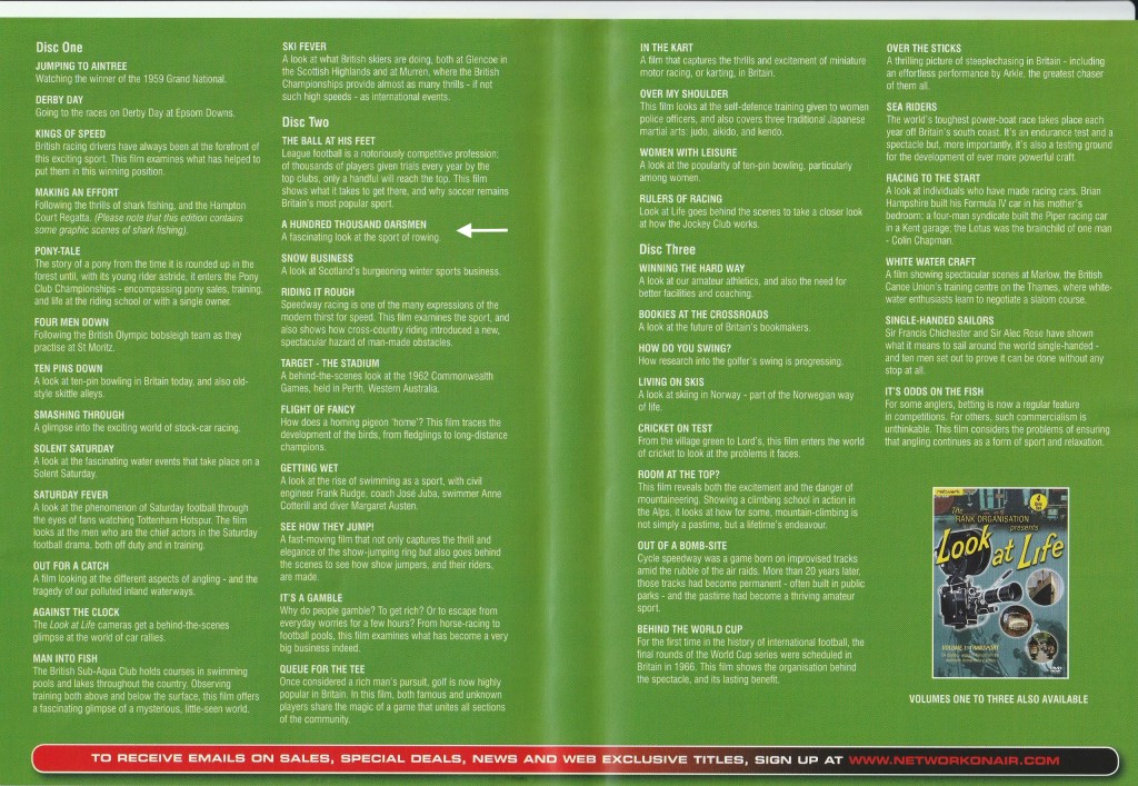 The last Look at Life was produced in 1969 but, fortunately for HTBS Types, eight years earlier in 1961, a film in the series had been made about the state of amateur rowing in Britain at the time: A Hundred Thousand Oarsmen (henceforth referred to as Oarsmen).
