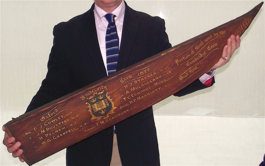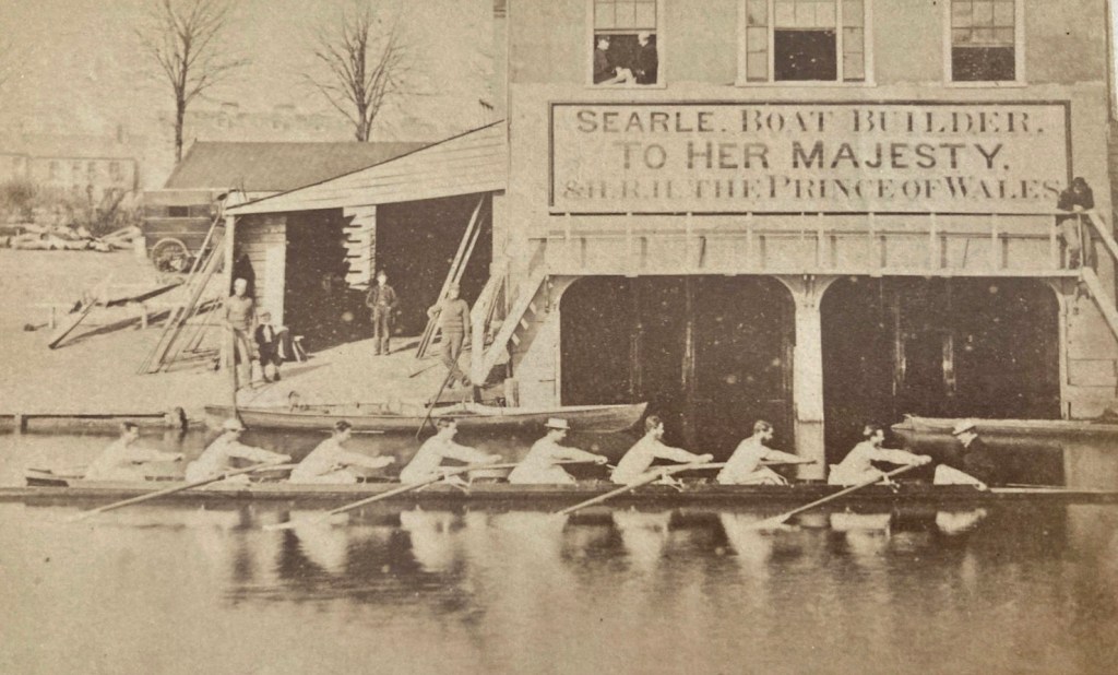 This may or may not be the bow of the Cambridge boat from the 1877 “Dead Heat” Oxford – Cambridge Race but it does show a typical lethally sharp-pointed bow of the period.
