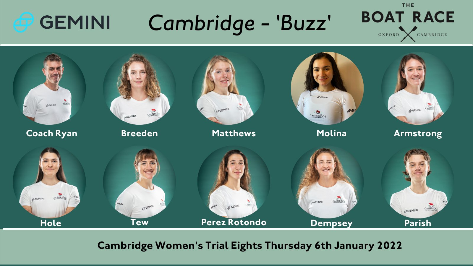 This year, the Cambridge Women’s trial crews were named Buzz and Woody after the dogs owned by their Chief Coach, Patrick Ryan.