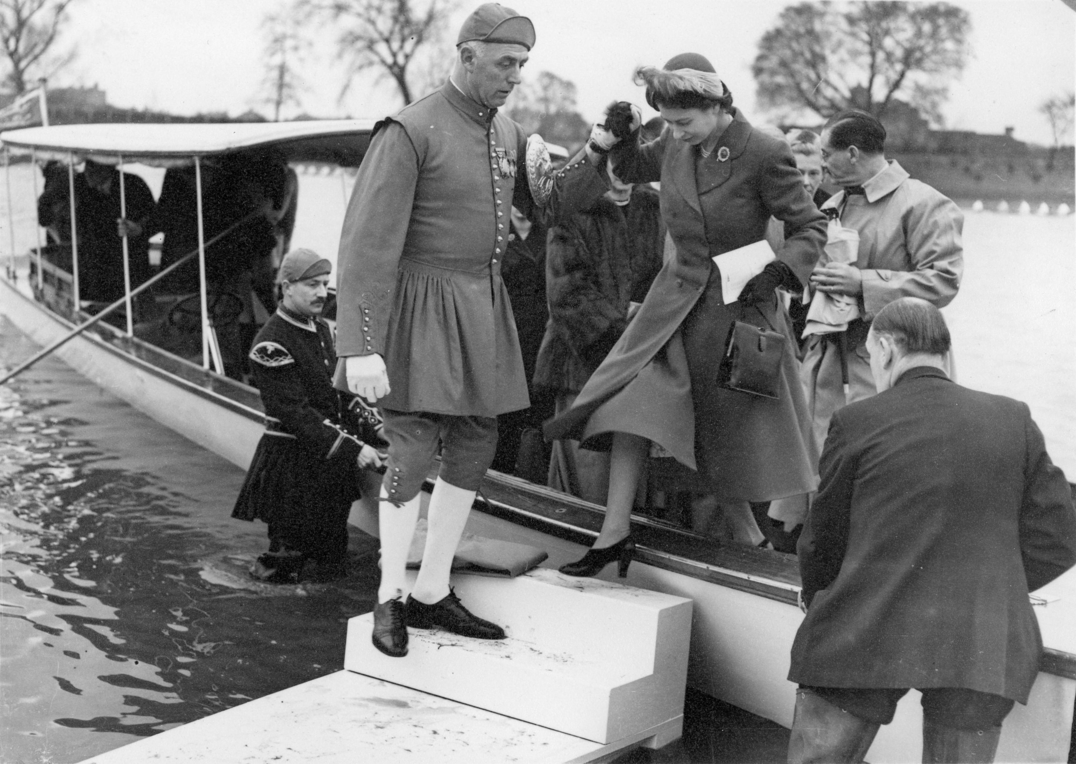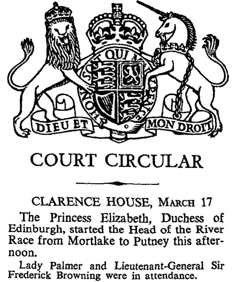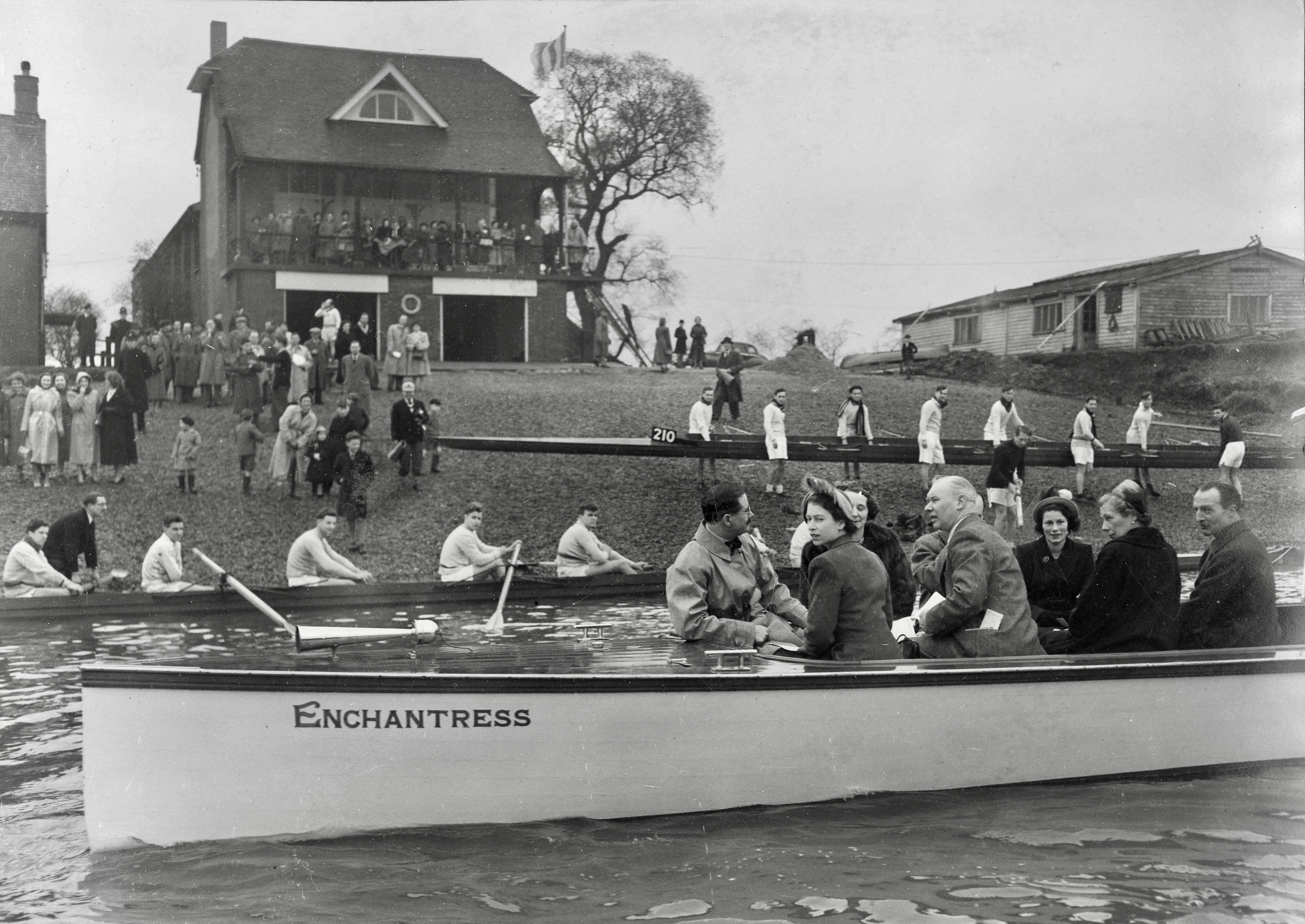 To mark the Platinum Jubilee in HTBS style, reproduced below are some charming pictures from one of the many thousands of events that Queen Elizabeth has attended in her lifetime, in this case her visit to the 1951 Silver Jubilee Head of the River Race, the Thames Tideway time trial for eights racing from Mortlake to Putney that was founded by Steve Fairbairn in the year of the Queen’s birth, 1926.