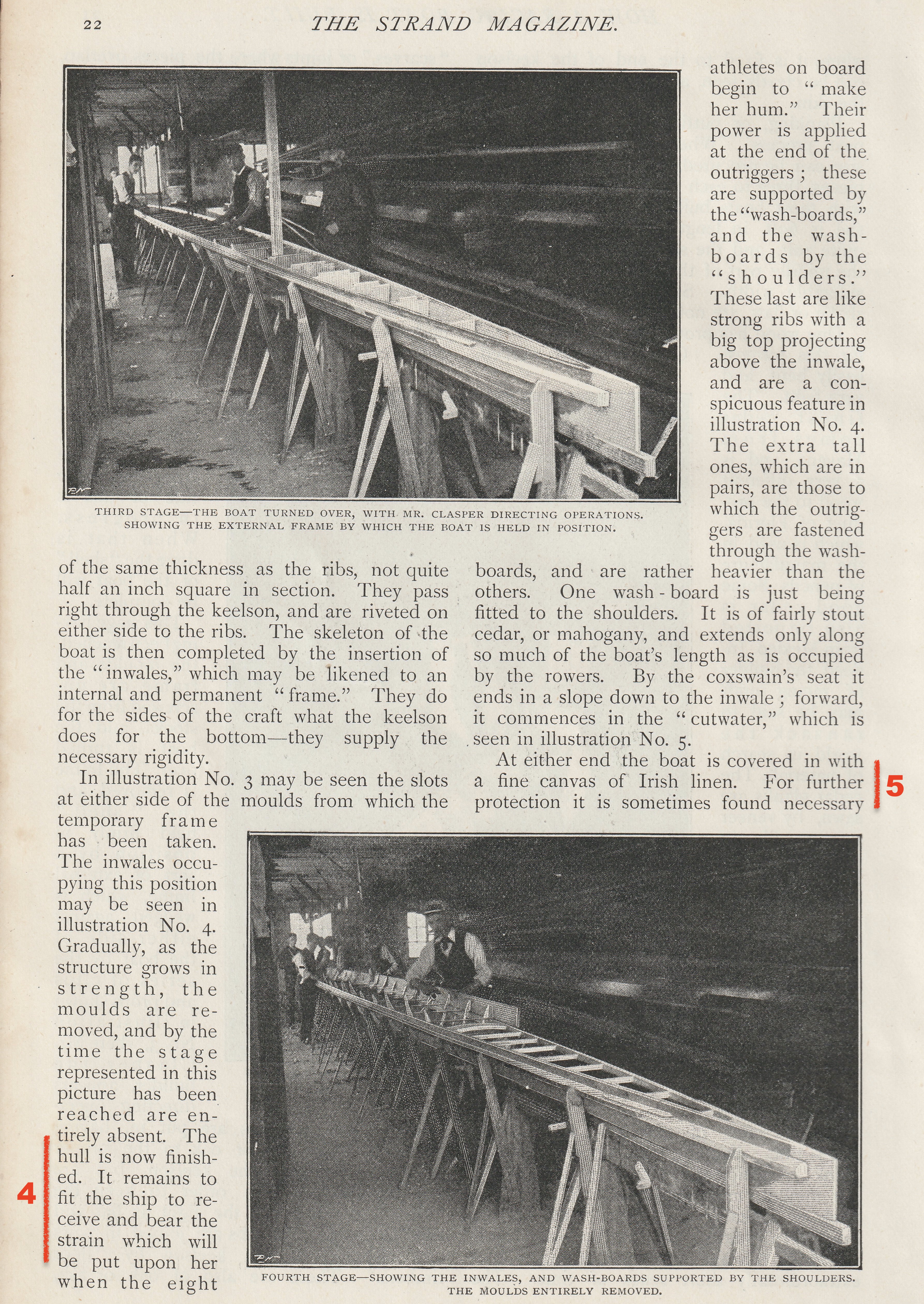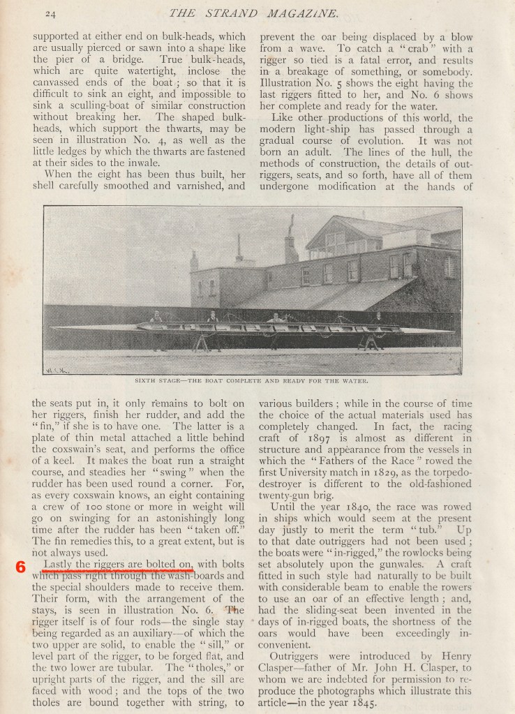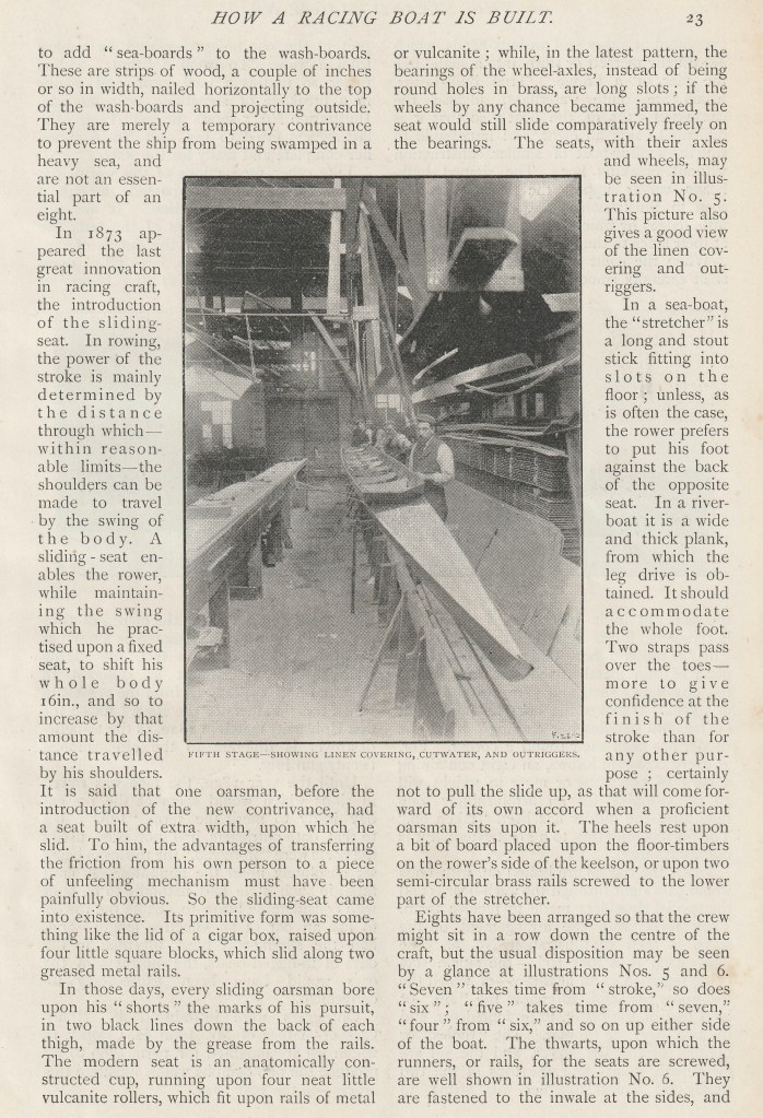 My recent piece on the 1939 magazine article on the building of a wooden racing eight for that year’s Oxford – Cambridge Boat Race has attracted a lot of readers. However, while the piece had a number of interesting pictures, it lacked a detailed explanation of exactly how the boat was made. Recently though, I have found an article from an 1897 copy of The Strand Magazine titled “How a Racing Boat is Built” that is exactly the opposite: short on pictures, long on explanatory text. I imagine that boatbuilding techniques changed very little in the forty-two years between the two features.
