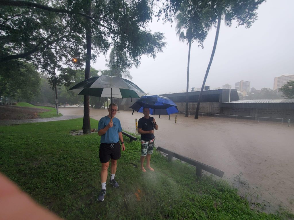 Away from the main channel of the Brisbane River, the city’s other watercourses have all broken their banks. 2 km north of the Brisbane River, I filmed the normally placid Kedron Brook in full rage.