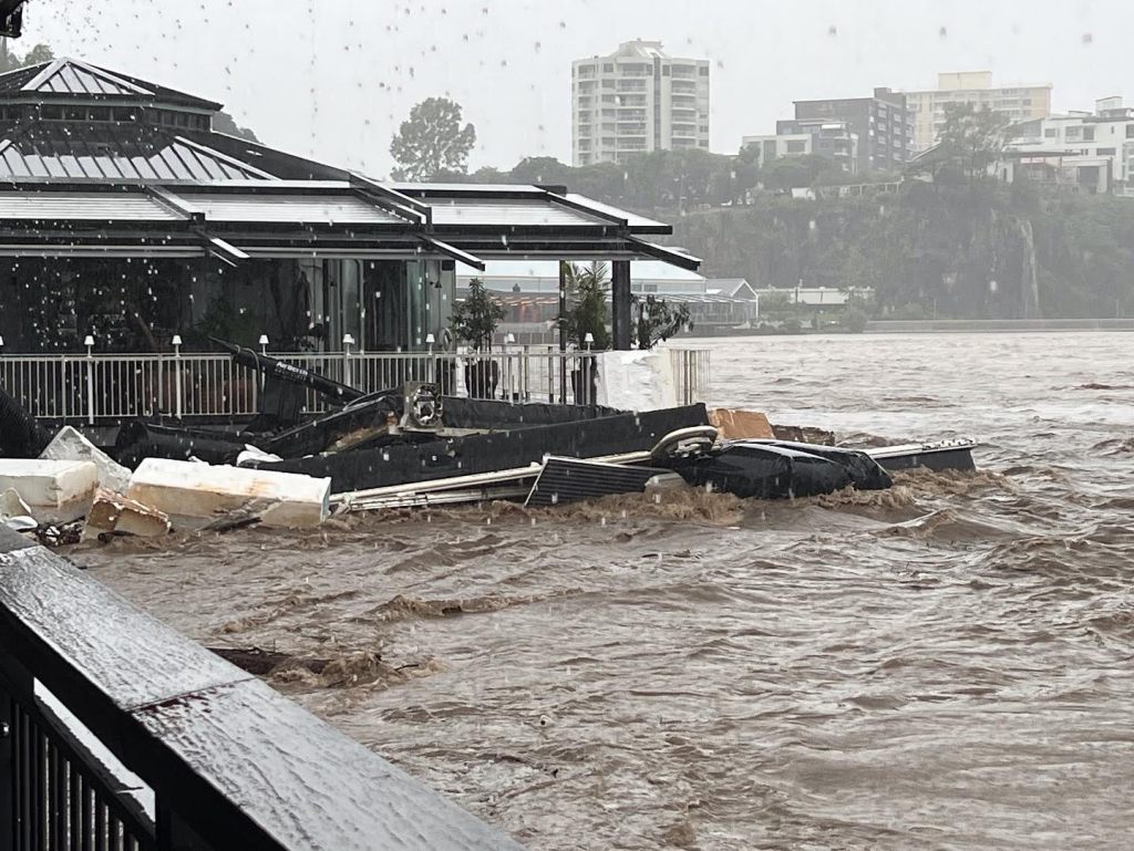 Most at risk are the city’s rowing clubs, which cluster mainly just upstream of the CBD at South Brisbane. As at the time of writing, the rowing sheds of Commercial Rowing Club, Nudgee College & All Hallows, Brisbane State High School, Rowing Queensland and Brisbane Grammar & Brisbane Girls Grammar Schools had all been inundated.