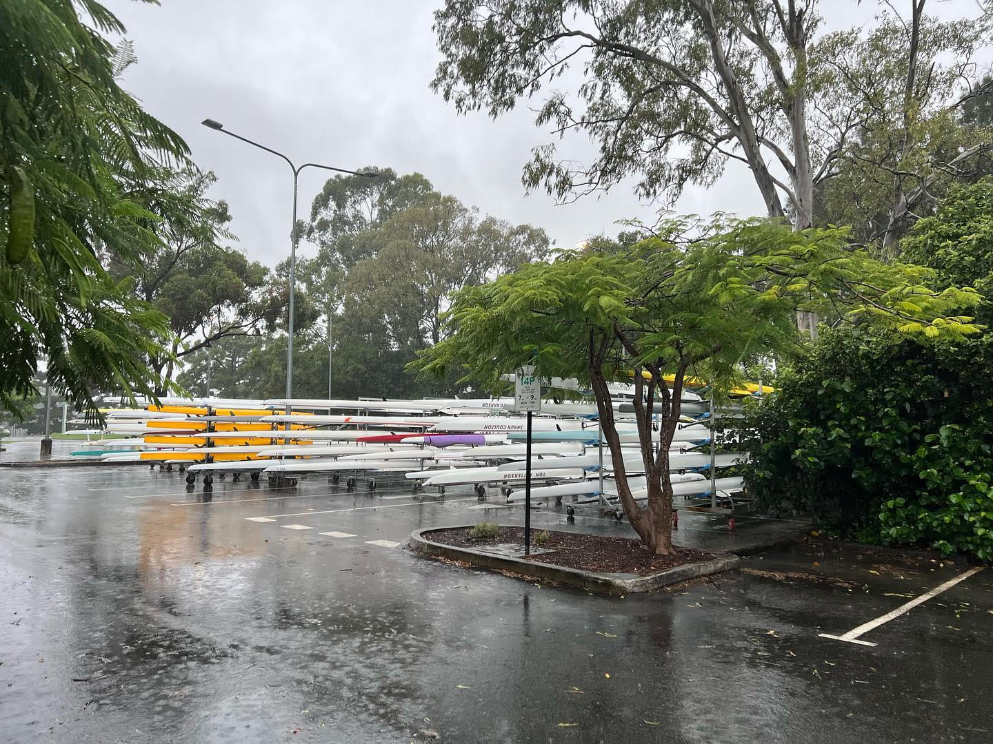 As the river came up, frantic text messages from the clubs and schools summoned volunteers to move boats and equipment top higher ground before the arrival of the flood waters. Lines of boats on nearby roads and carparks attest the fact the calls were successful.