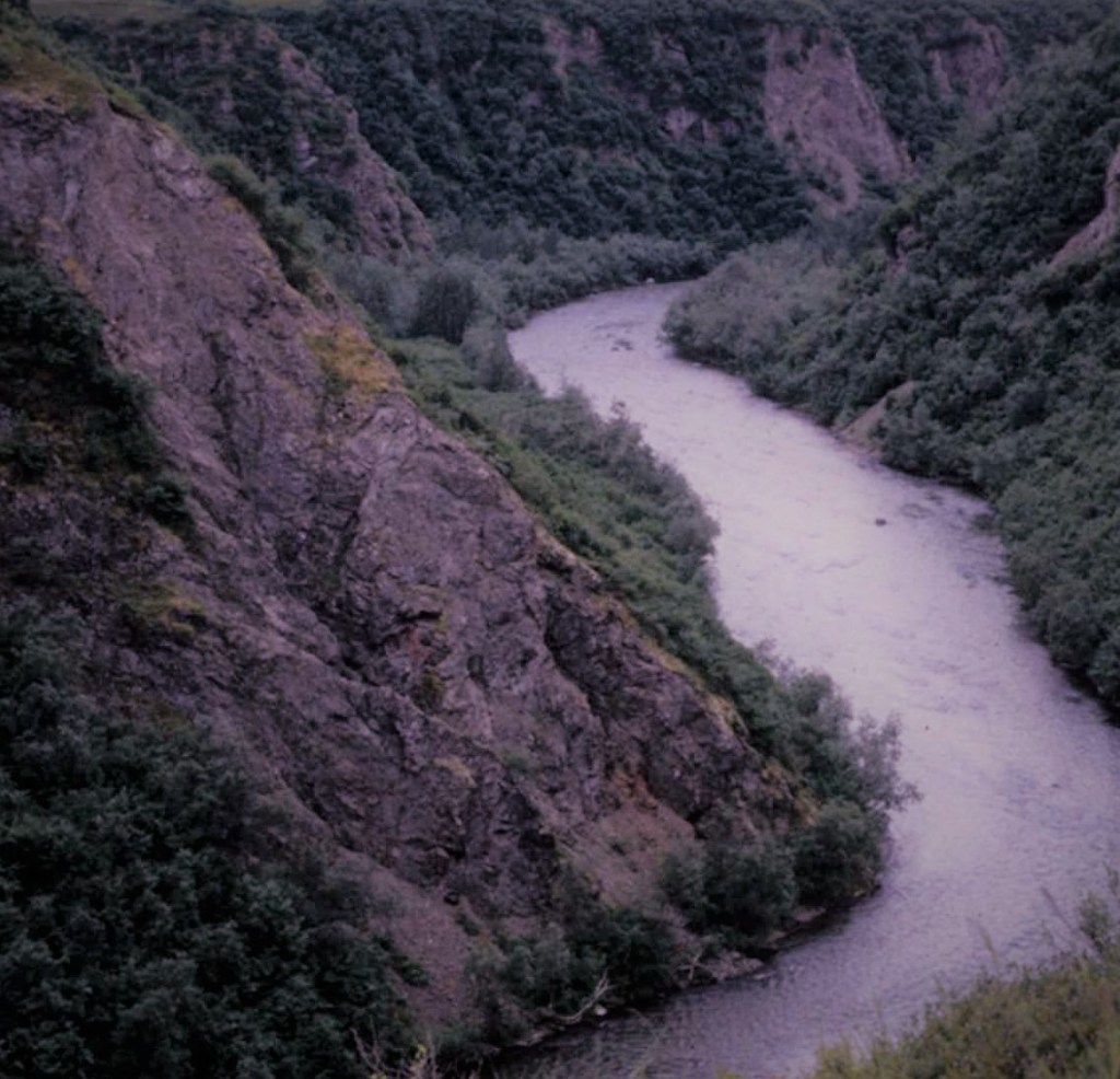 down the hill onto the river,
