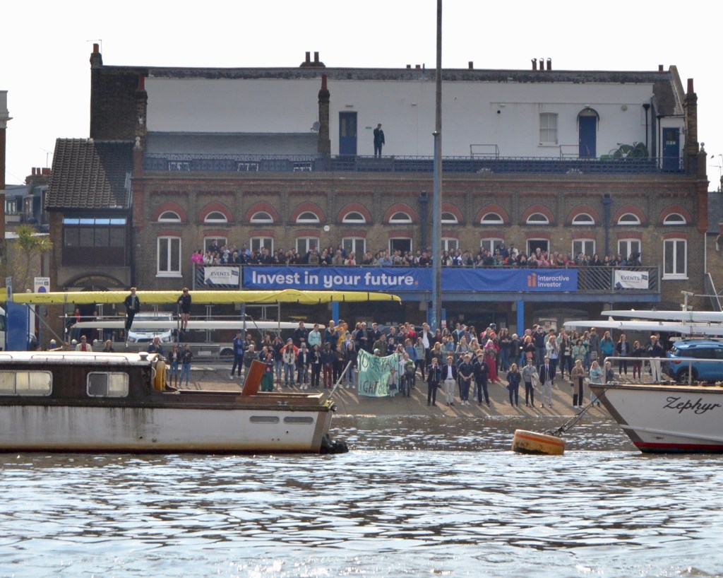 At the start of the men’s race, supporters gather outside London Rowing Club, the host venue for the event.Cambridge had a good start, Oxford a poor one and, by London Rowing Club, the Light Blues had established a good lead (though not as great as the parallax error here indicates).As in the women’s race, the Cambridge men soon settled….While Oxford were somewhat “splashy”. Passing Barn Elms, Cambridge in command.After Barn Elms, Oxford seemed to finally settle into a more comfortable rhythm…But, approaching the Mile Post, the seat of Oxford’s “3” man came off the slides and took some time to fix. The live stream camera did not record this as it was fixed on Cambridge at the time.Cambridge reached Hammersmith Bridge in 6m 53s, 12 seconds ahead of Oxford. Corney Reach: It is not plain sailing for Oxford.The Barnes Bridge times were 14m 52s and 15m 06s.Approaching the Ship, the pub that has seen all the Boat Race finishes.Cambridge won by 5 lengths in a time of 18m 01s, 15 seconds ahead of Oxford.Cox Felix Craig-McFeely leads Cambridge’s celebrations, the first for their lightweights on the Tideway.Oxford at the end of three consecutive victories. They won by 1 1/2 lengths at Ely last year. On the Tideway, they won by 3 1/2 lengths in a time of 19m 28 s in 2020, and by 2 1/4 lengths and a time of 17m 43 s in 2019.Cambridge stroke Matt Edge faces his crew.The difference times between the two races are interesting. In the women’s race, the gap continued to increase but, in the men’s race, it stayed at 12 – 15 seconds. Graphic: Twitter/@lwtboatraces.A special mention must go to Oxford’s Matt Hudson, Aggy Crumpton, Olly Featherstone and James Halsall for their post-race interview on the live stream (01.50.50). It was a great example of sportsmanship and humility and it reflected well on them and on the sport of rowing.Finally – Cambridge supporters on Hammersmith Bridge sum up the Light Blue Day.