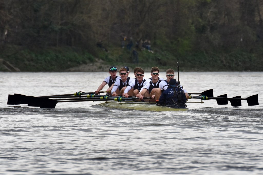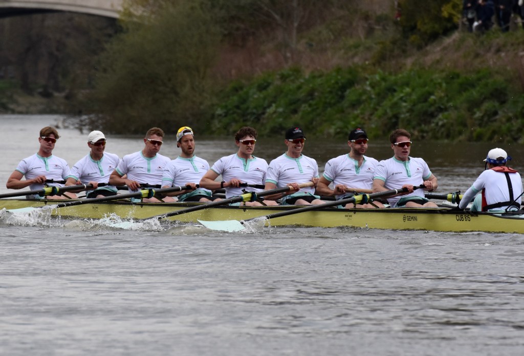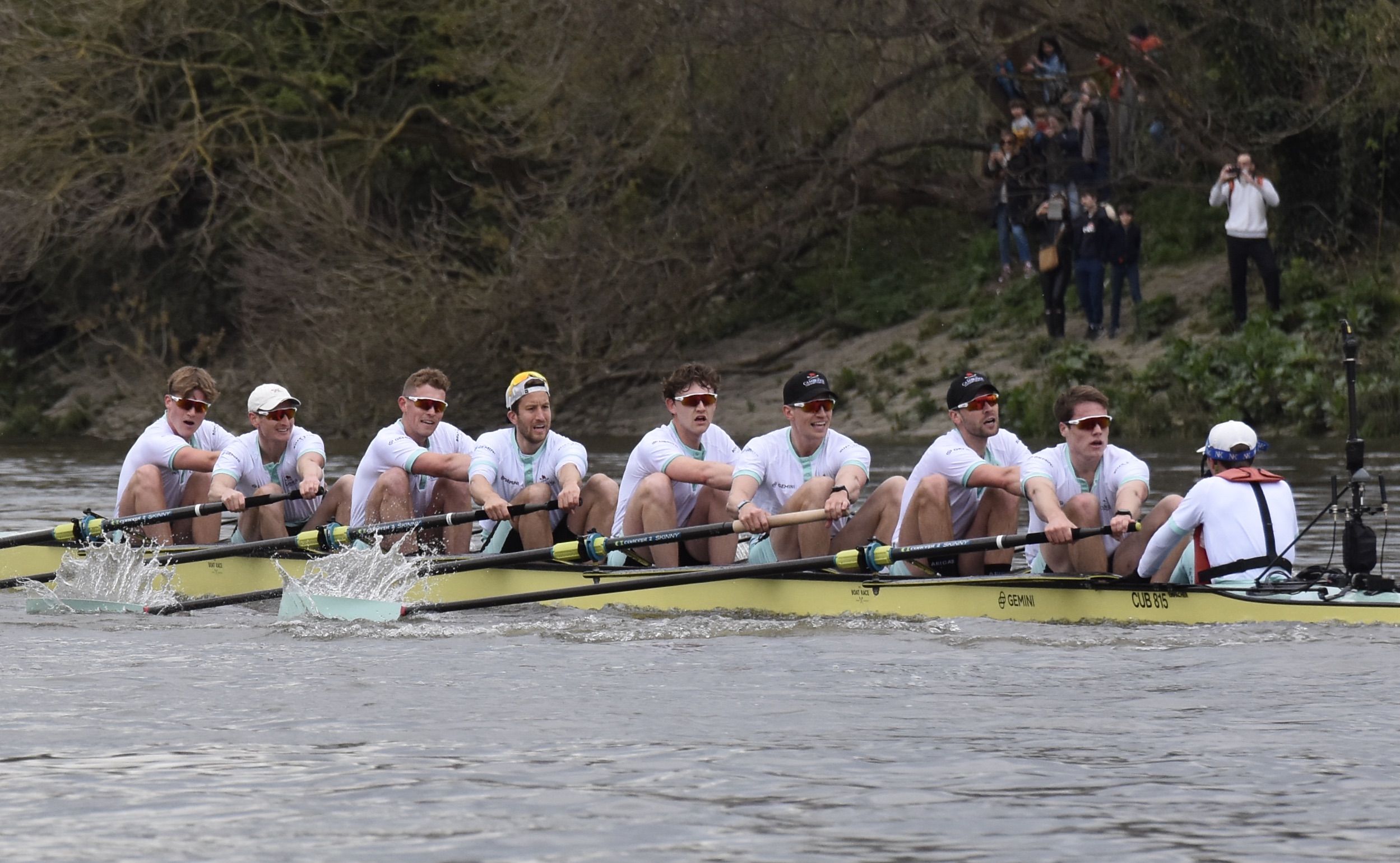 30 seconds in and Cambridge go ahead.Oxford on the back foot.A side shot with no parallax error shows Cambridge two seats up.Staying sharp.