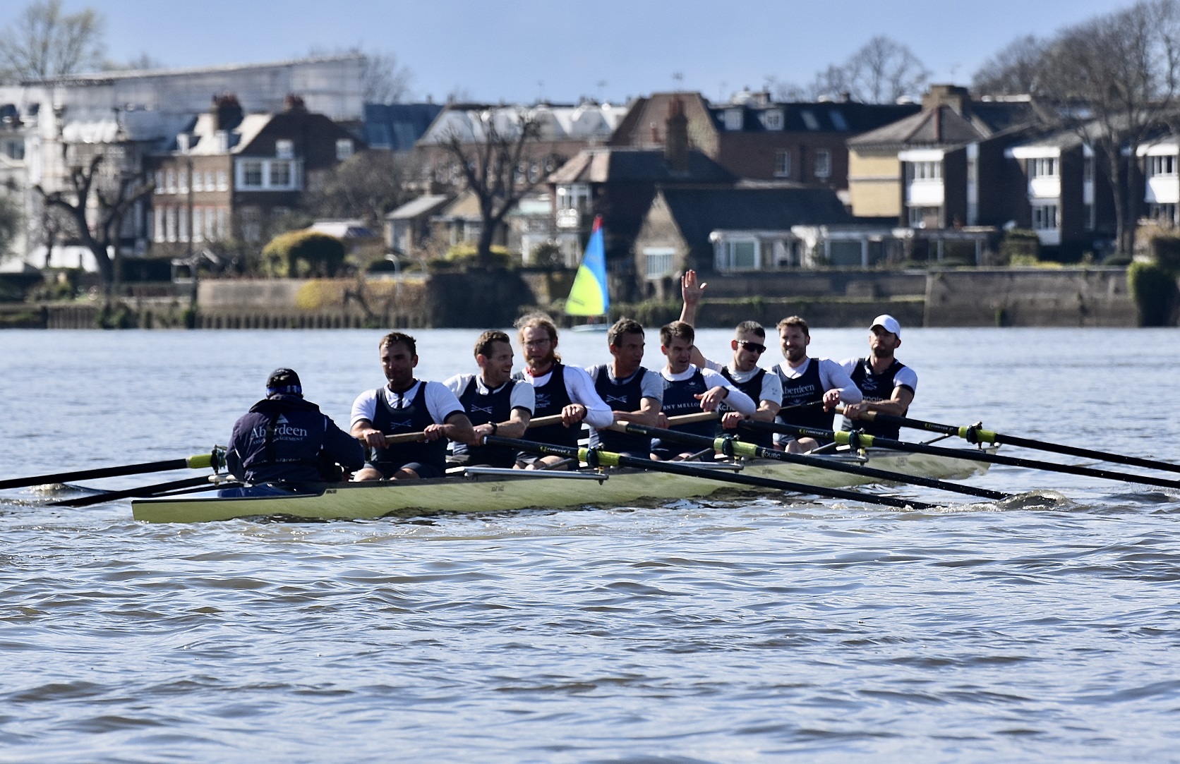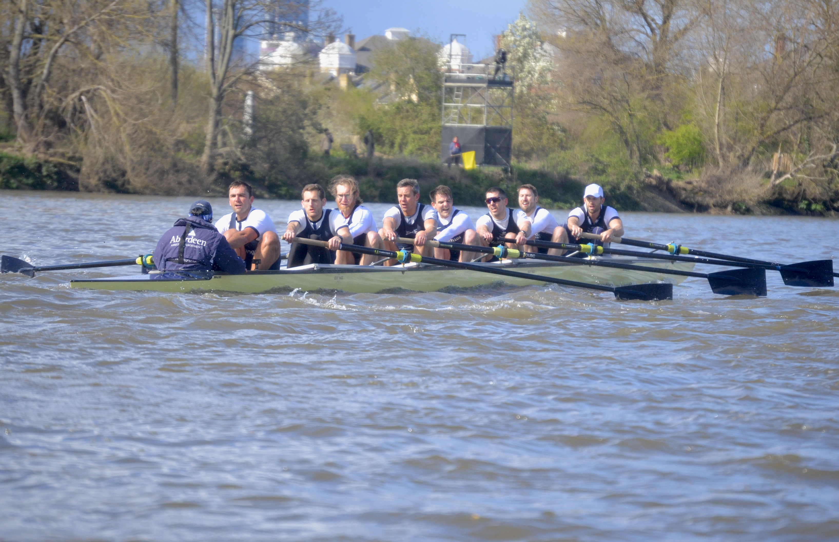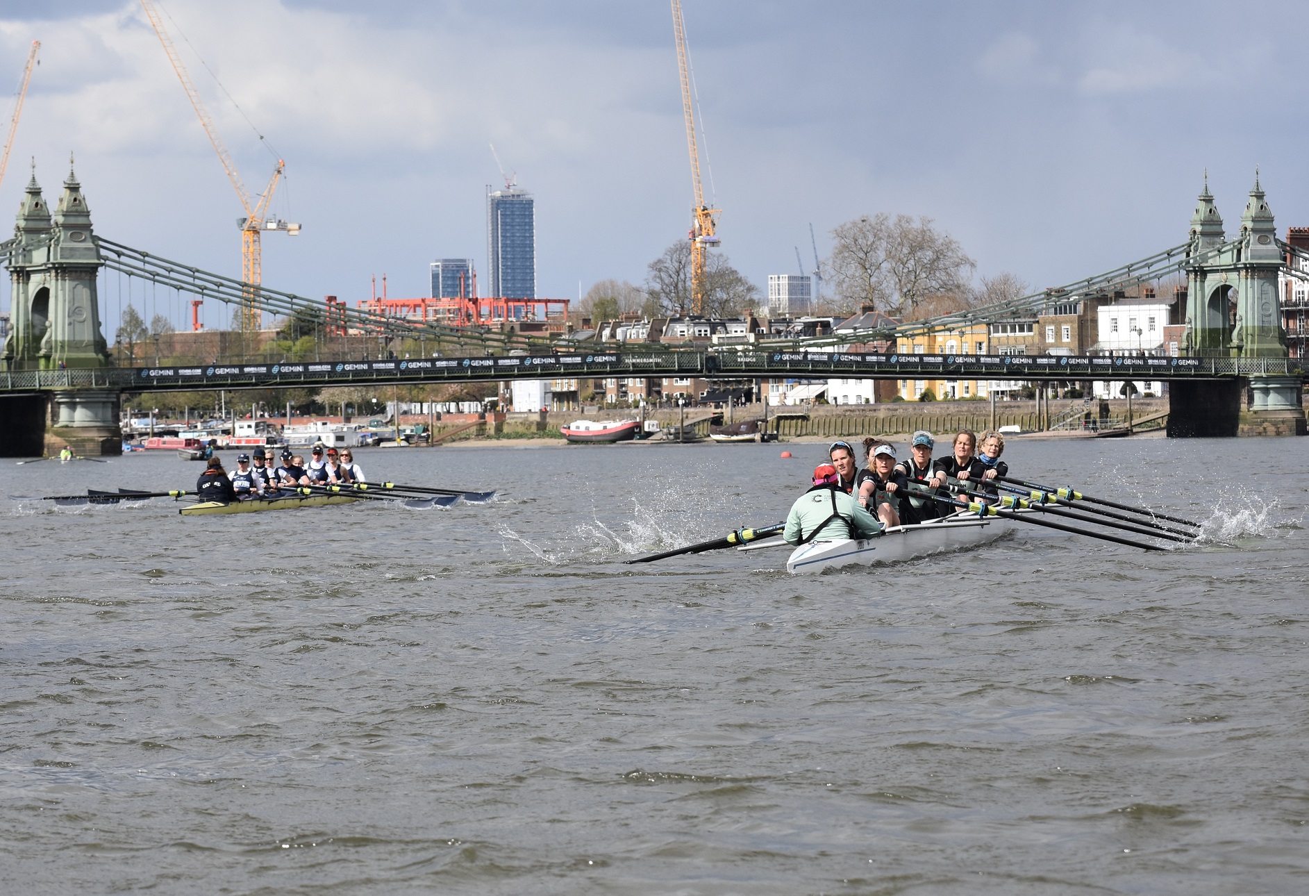 I was impressed with the Cambridge start, they got out to a 1/4 – 1/2 length pretty quickly and kept going right through… The Oxford crew looked tired and ragged and I thought that it was all over. But, before right Hammersmith Bridge, Cambridge seemed to hit a brick wall, they really slowed down, Oxford started coming through and I think that they knew that they had a chance. Then there was a big clash under the bridge (as Cambridge were being warned) and Cambridge were disqualified. The rules are quite clear, Oxford were coming through and Cambridge were not getting out of the way. It is fine if you are out of your water and leading but, if the other guys catch up, you’ve got to move – and Cambridge didn’t.